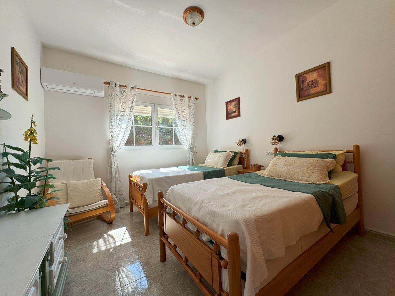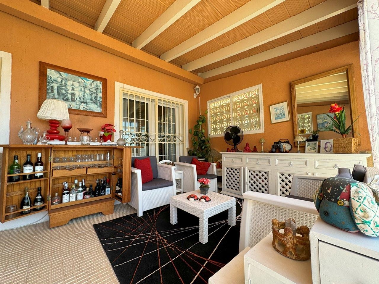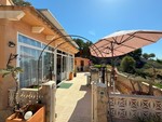 Een aparte ingang leidt naar extra comfortabele woonruimte: hal en gang, overdekt terras met beglazing, ruime woon/eetkamer met open keuken, gang, hoofdslaapkamer met badkamer, gastenslaapkamer, doucheruimte en extra kamer die momenteel in gebruik is als studeerkamer die ook kan dienen als 5e slaapkamer.Buiten heeft het een verharde parkeerplaats op 2 niveaus, zwembad van 32 m², betegeld zwembadterras, buitendouche, BBQ, pergola, poolhouse met toilet, douche en een multifunctionele ruimte.