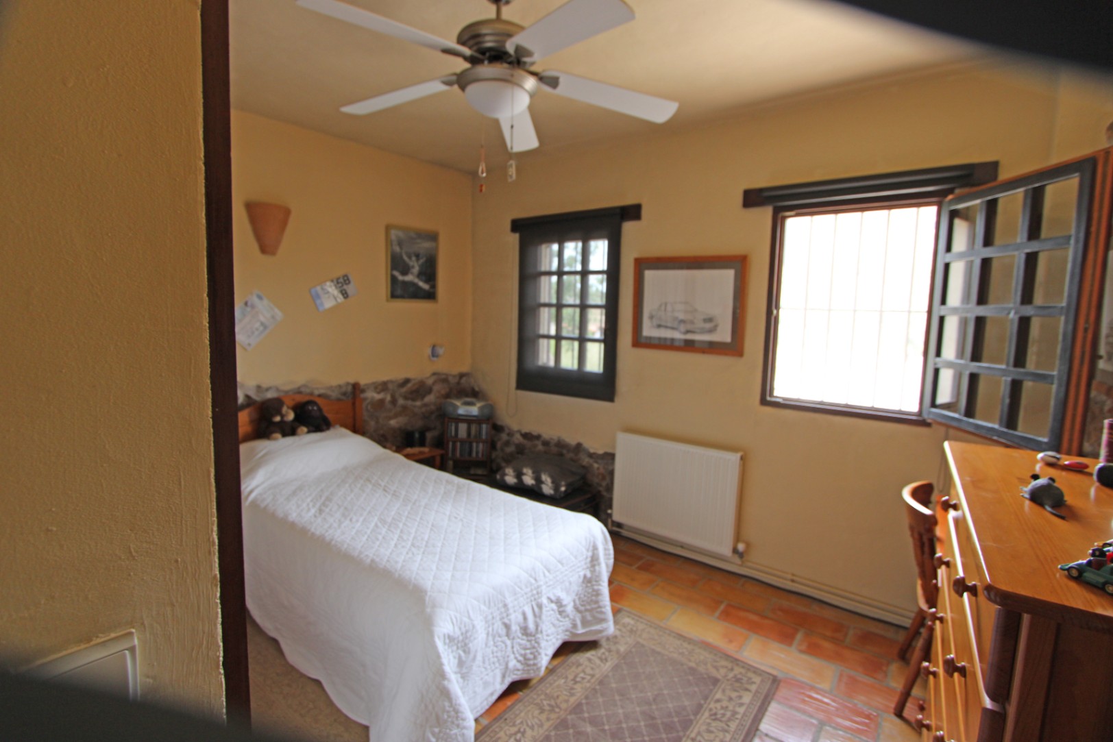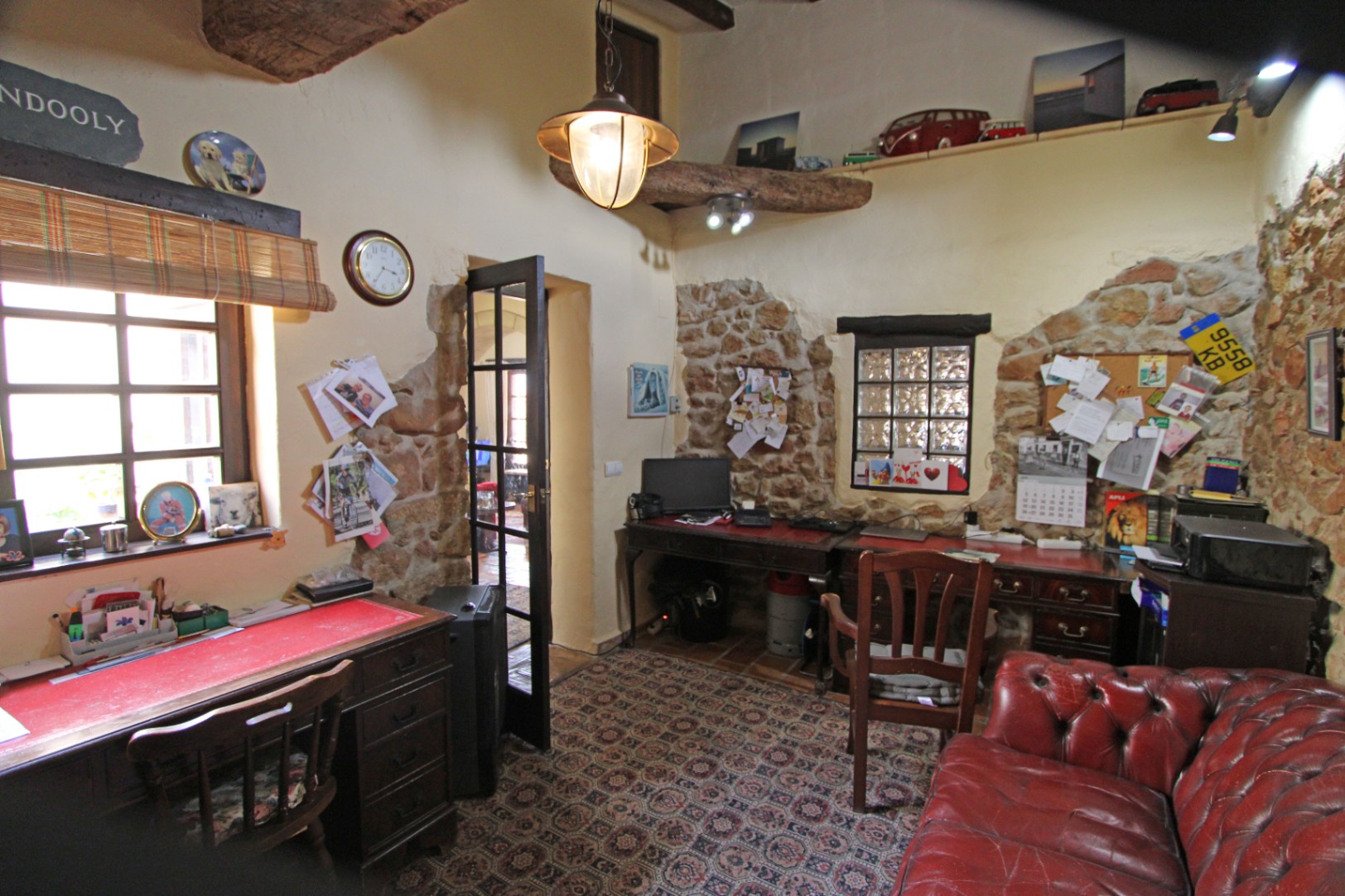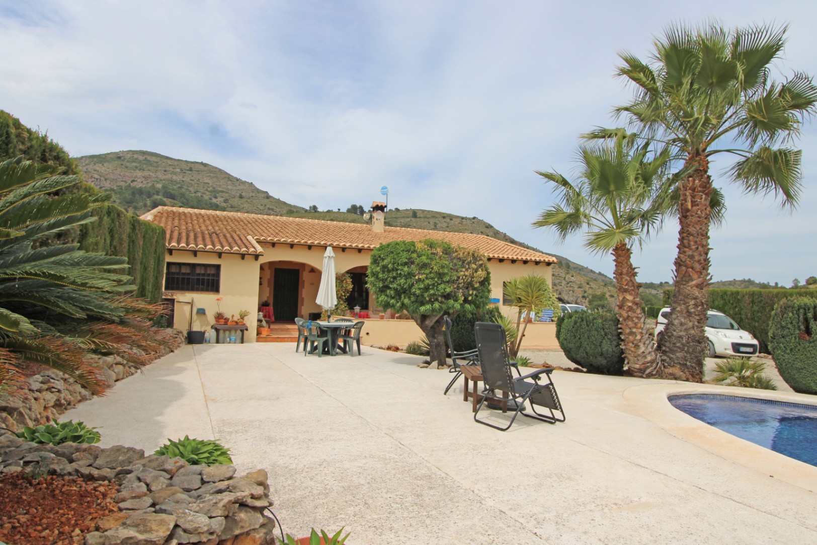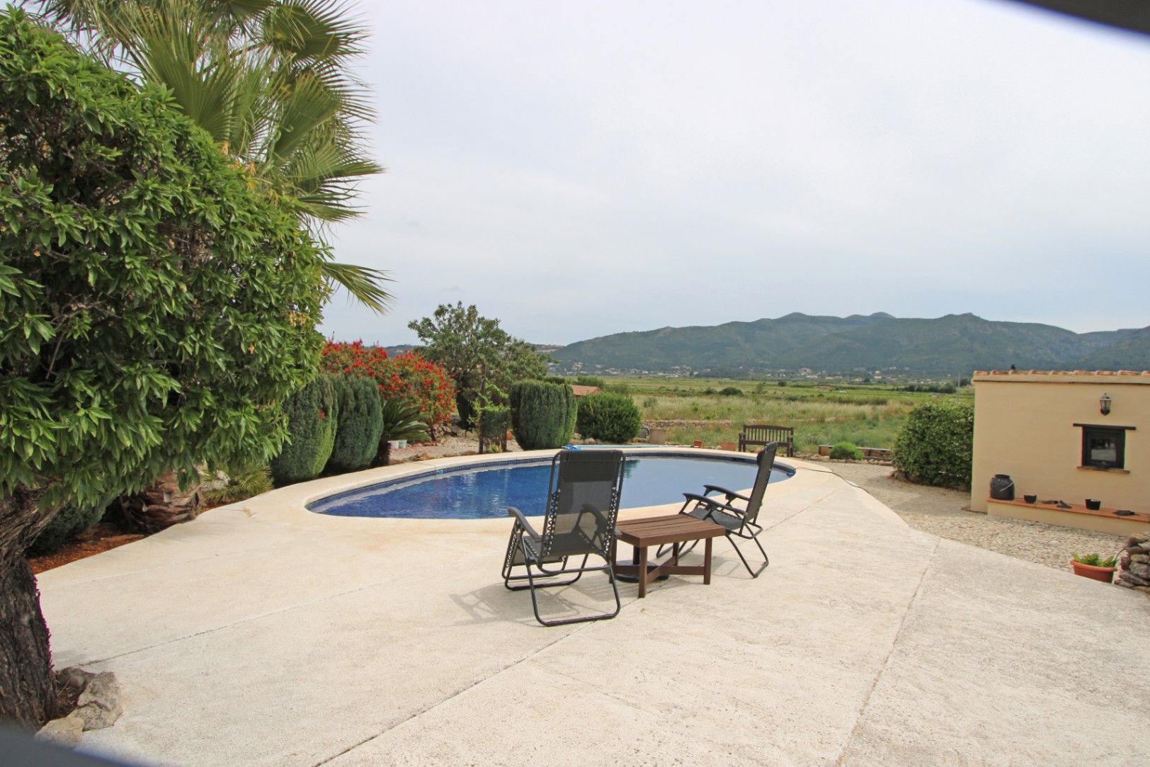 Charming Finca-Style Villa with Stunning Views in Idyllic Jalon Valley Setting This beautiful finca-style property exudes charm and character, perfectly positioned in a peaceful, private location just a short walk from the picturesque villages of Jalon and Lliber. Boasting breath-taking southwest-facing views, this home offers an ideal blend of traditional craftsmanship and modern comfort. The accommodation is arranged across a single level and is accessed through a spacious covered Riu Rau and traditional naya, showcasing classic stonework typical of the region—an ideal space to relax and soak in the spectacular valley views. Inside, the welcoming lounge and dining area features exposed wooden beams and a cosy wood-burning fireplace, creating a warm and inviting ambiance. Adjacent to the dining space is a fully fitted kitchen that enjoys views over the pool and garden, seamlessly combining practicality with charm. The hallway leads to four double bedrooms, including a spacious master suite complete with en-suite bathroom, dressing room, private gym space, and direct access to the terrace. Three additional double bedrooms with fitted wardrobes provide flexibility; one is currently used as an office/study. A well-appointed guest bathroom with a athtub serves these rooms. Additionally, a quaint internal courtyard brings natural light into the hallway and two of the bedrooms. Authentic terracotta tiles run throughout the home, and each room features beautifully treated natural stone walls, adding warmth and rustic elegance. Set on a fully enclosed and meticulously maintained plot, the property offers complete privacy and a variety of outdoor features, including: A private oval swimming pool A shed housing 12 solar panel batteries A charming wooden shed Mature Mediterranean gardens with an olive grove and a variety of fruit and palm trees A long driveway with ample off-street parking, including space ideal for a campervan.This exceptional finca offers a rare opportunity to enjoy the tranquillity of rural Spanish life with all modern comforts close at hand. The owners have also purchased the adjoining plot, which has been cleared, with restored stone walls and newly planted greenery for added privacy. The property benefits from mains water, solar panels with battery storage, oil central heating (with two tanks), and beautiful stone arches throughout.Early viewing is highly recommended to fully appreciate the unique charm, peaceful setting, and panoramic views this stunning home has to offer.