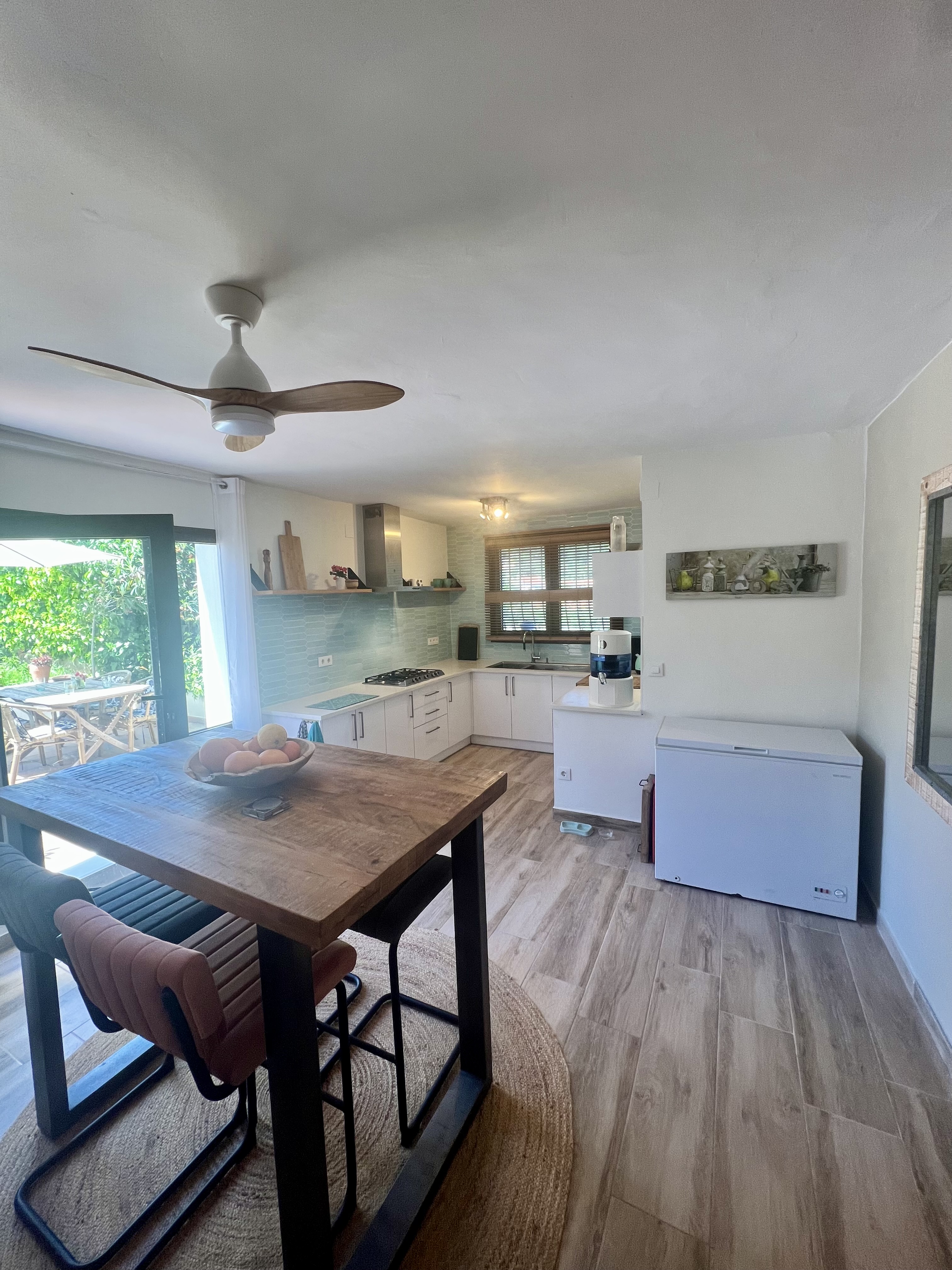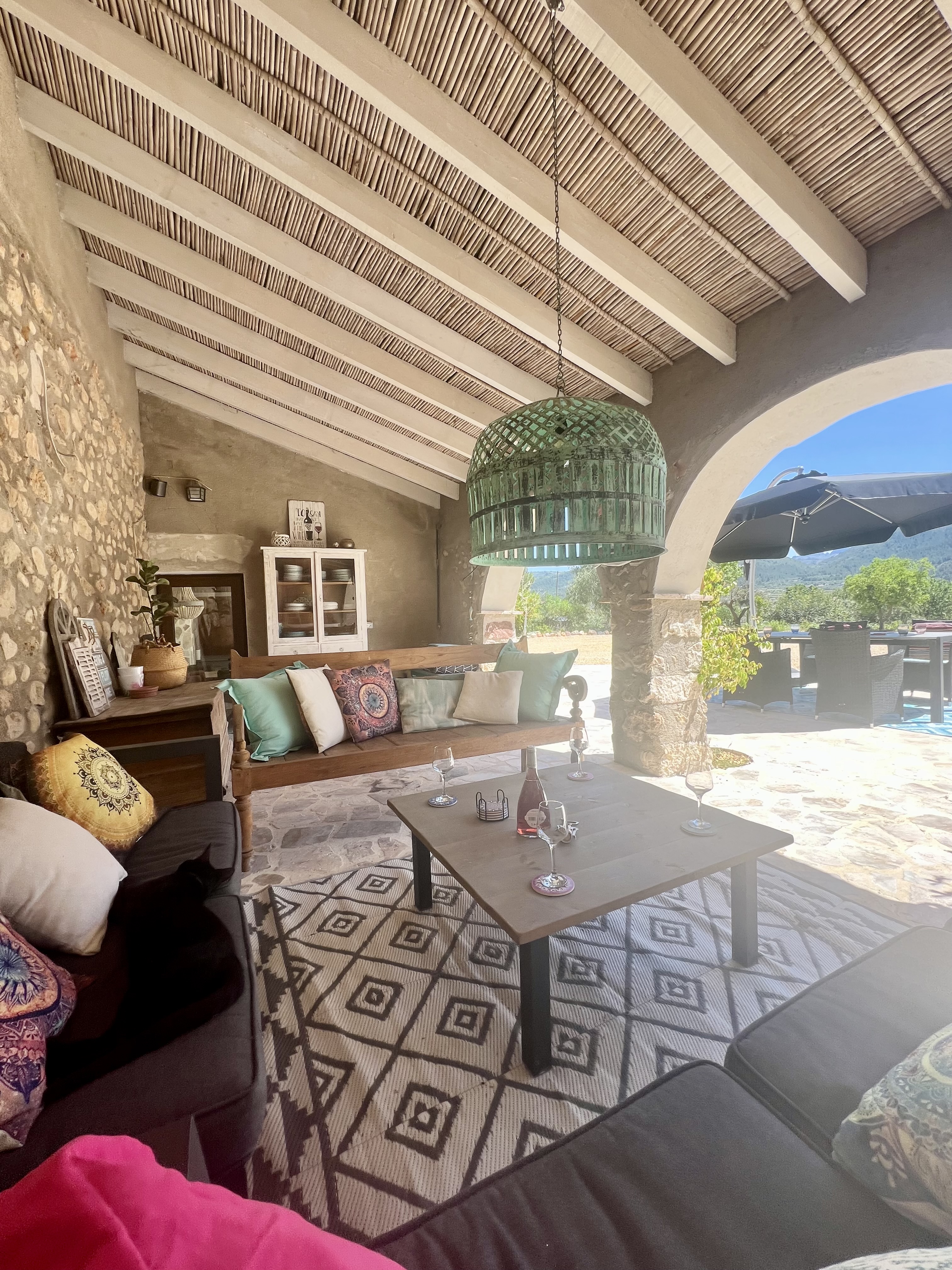De recent volledig verbouwde en verduurzaamde finca heeft een bijzondere indeling met een grote open ruimte in split level, waarin de woonkamer, eetkamer en keuken naadloos in elkaar overlopen. Vanuit deze leefruimte heeft u directe toegang tot het zonnige voorterras, de ruime veranda (naya) en het achterterras met een heerlijke jacuzzi – perfect om te ontspannen en te genieten van het mediterrane klimaat. Aan de voorzijde vindt u bovendien een overdekte buitenkeuken, ideaal voor gezellige barbecues en diners met familie en vrienden.