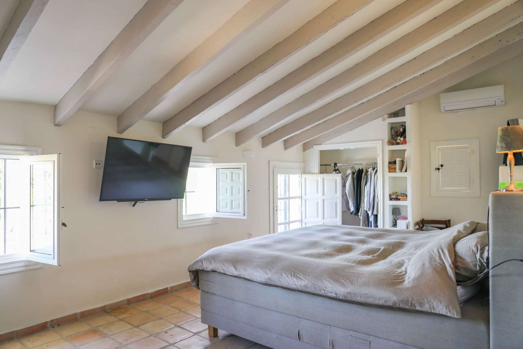 Beklim de elegante trap naar de bovenverdieping, waar de weelderige eerste suite wacht, compleet met inloopkast en eigen badkamer. Stap op het exclusieve terras van de suite om te genieten van het adembenemende, ononderbroken uitzicht op de iconische berg Montgó.