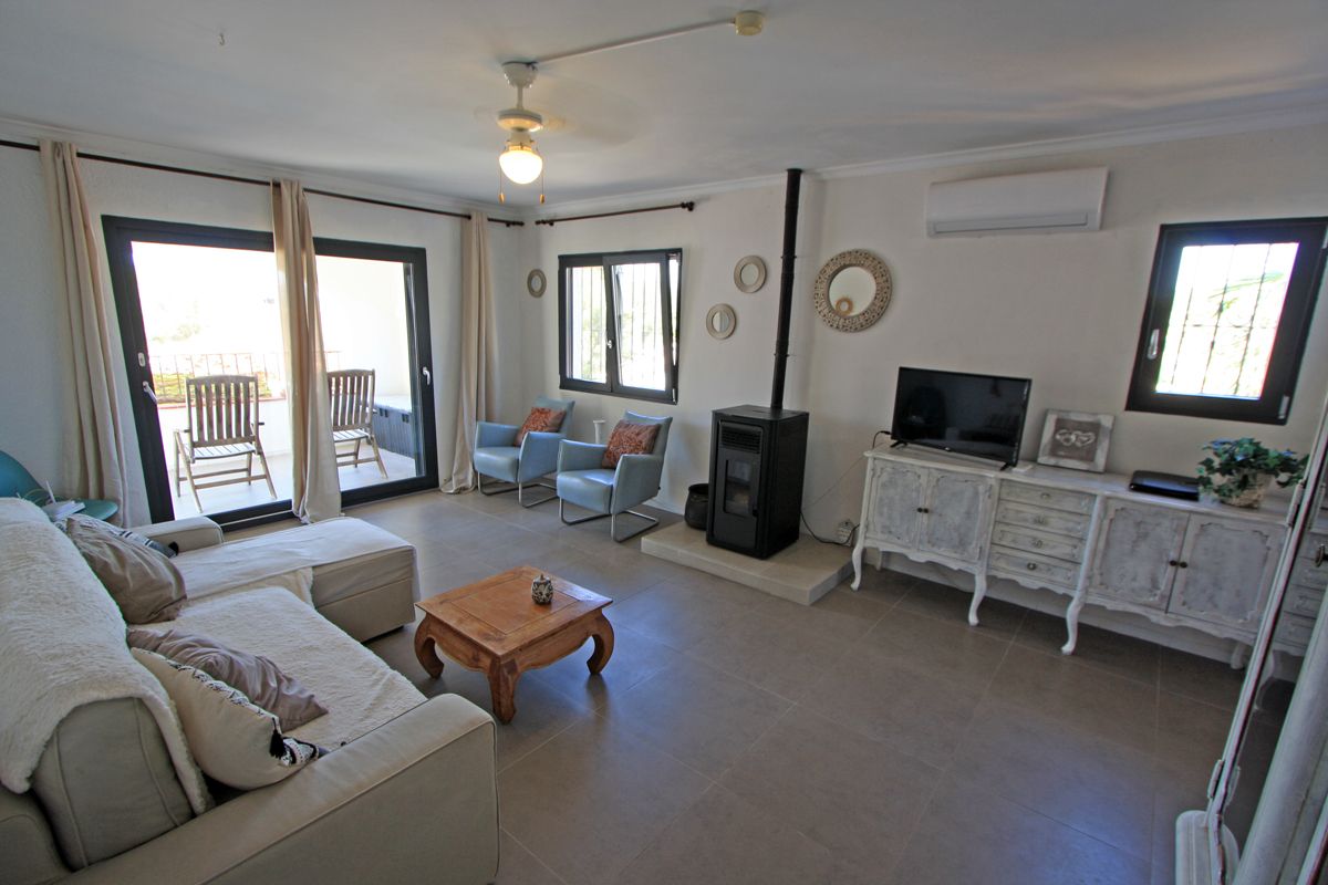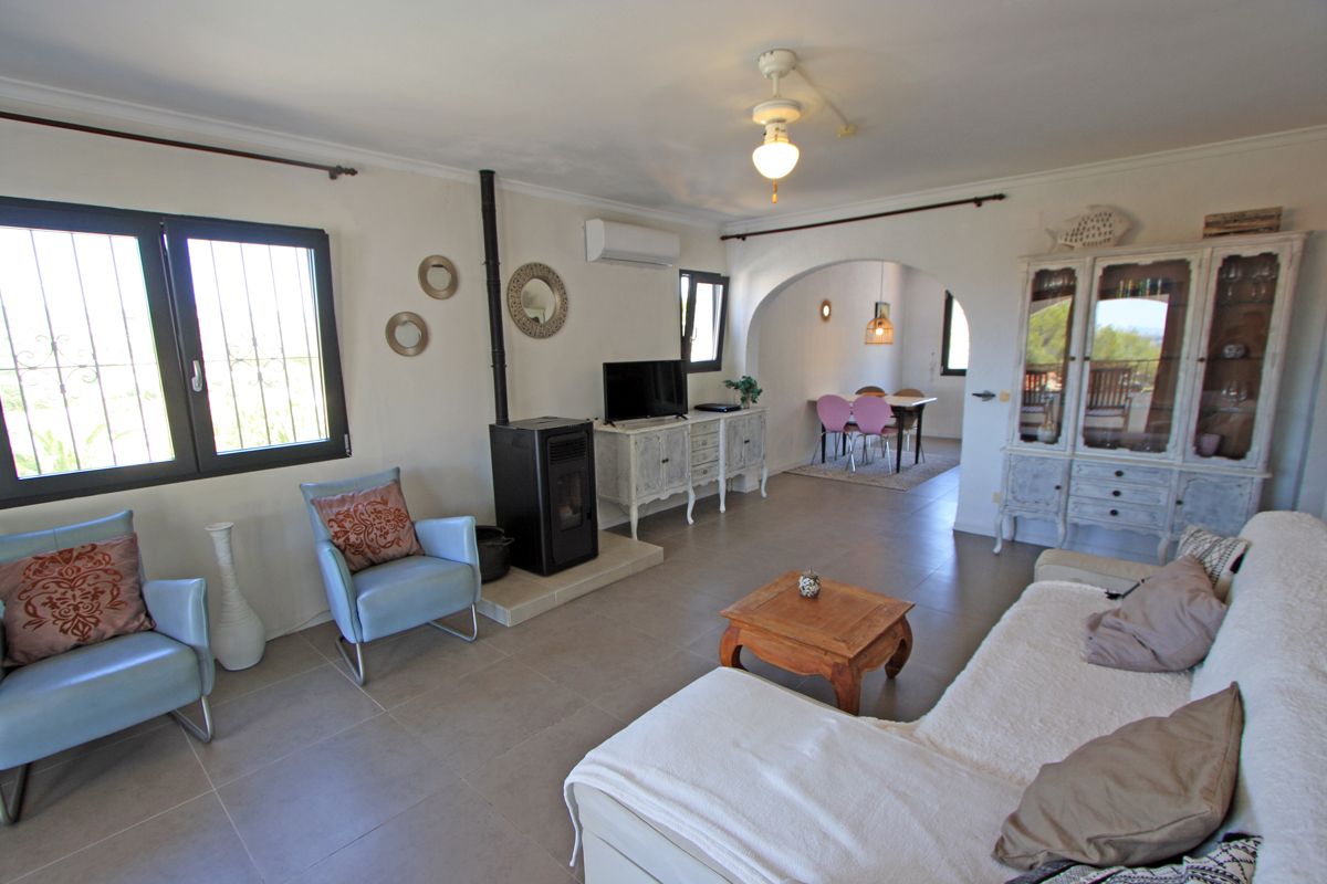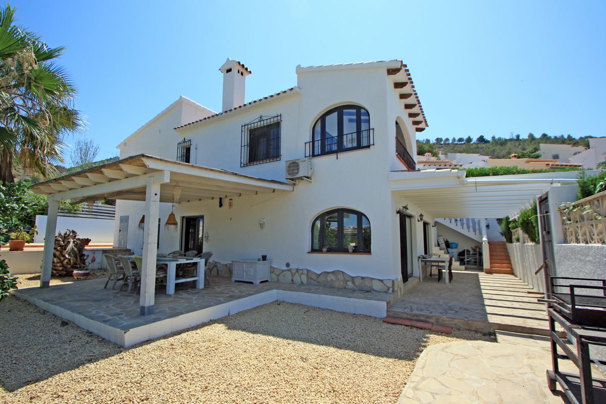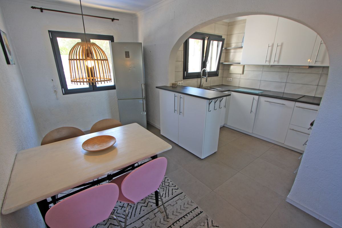 GREAT OPPORTUNITY! Villa for sale with 2 independent homes in Benitachell, heading towards Moraira. Ground floor: Living-dining room with open kitchen, leading to a covered terrace from where you can access another uncovered terrace with a private pool and garden areas. 3 Bedrooms, 2 of them with en-suite bathrooms. On the upper floor, with another uncovered terrace, there is another living-dining room with an open kitchen, a covered terrace, and 2 bedrooms that share 1 full bathroom. The property was renovated a few years ago with good finishes: Aluminum windows with double glazing, individual air conditioning, pellet heating, tile floors, etc... It is worth noting that the pool was newly built in 2018. A quiet residential area close to supermarkets and restaurants, just 4 km from the beaches of Moraira.