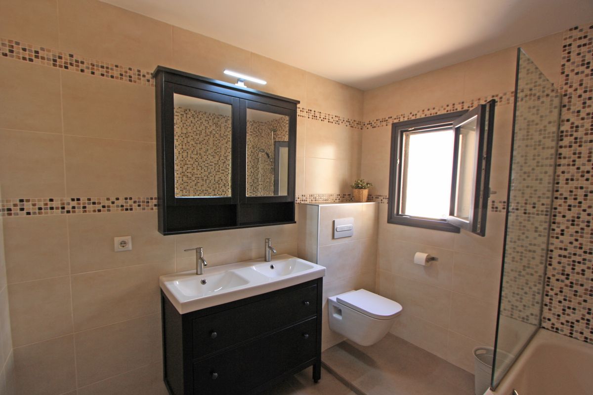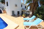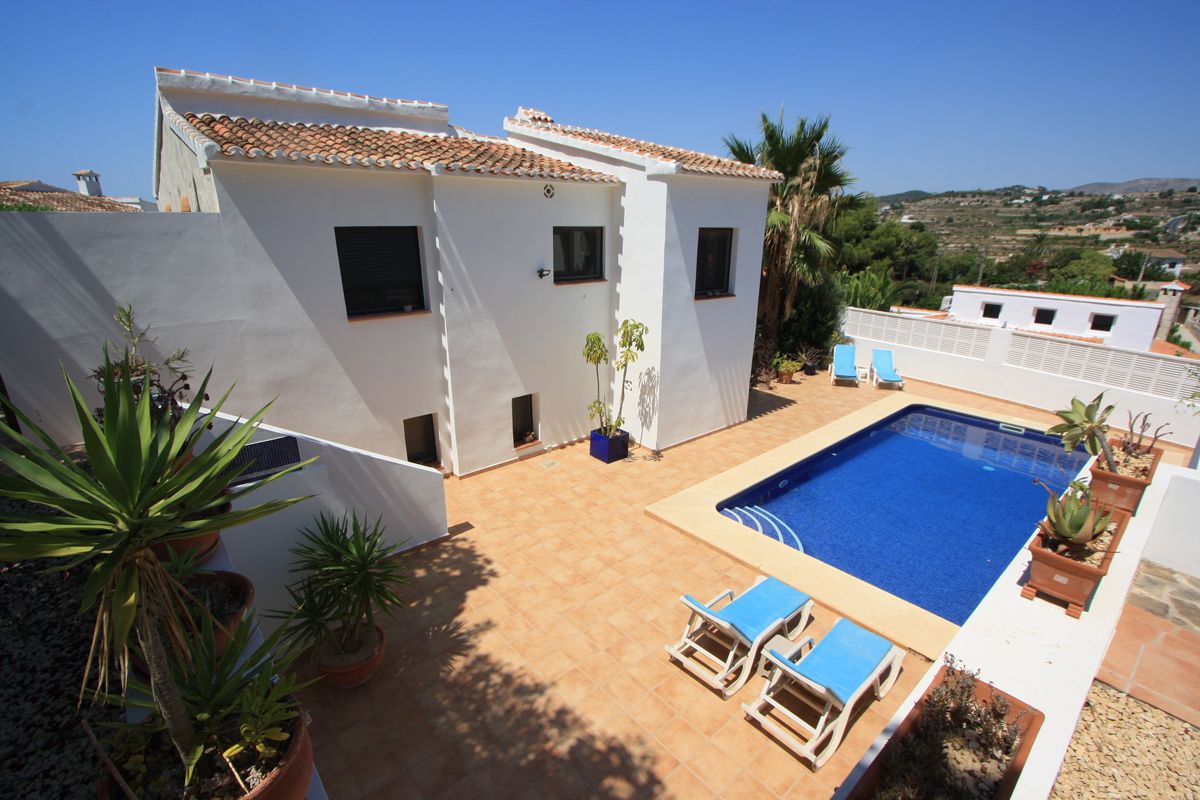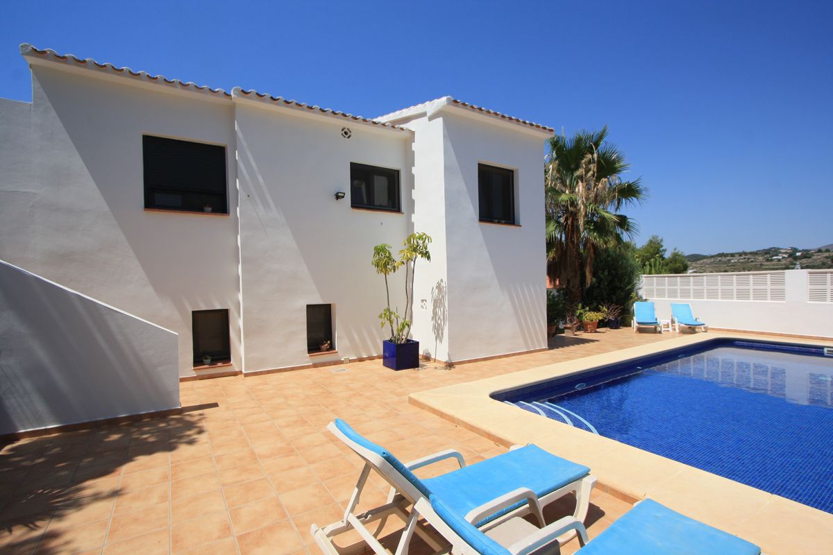 GREAT OPPORTUNITY! Villa for sale with 2 independent homes in Benitachell, heading towards Moraira. Ground floor: Living-dining room with open kitchen, leading to a covered terrace from where you can access another uncovered terrace with a private pool and garden areas. 3 Bedrooms, 2 of them with en-suite bathrooms. On the upper floor, with another uncovered terrace, there is another living-dining room with an open kitchen, a covered terrace, and 2 bedrooms that share 1 full bathroom. The property was renovated a few years ago with good finishes: Aluminum windows with double glazing, individual air conditioning, pellet heating, tile floors, etc... It is worth noting that the pool was newly built in 2018. A quiet residential area close to supermarkets and restaurants, just 4 km from the beaches of Moraira.