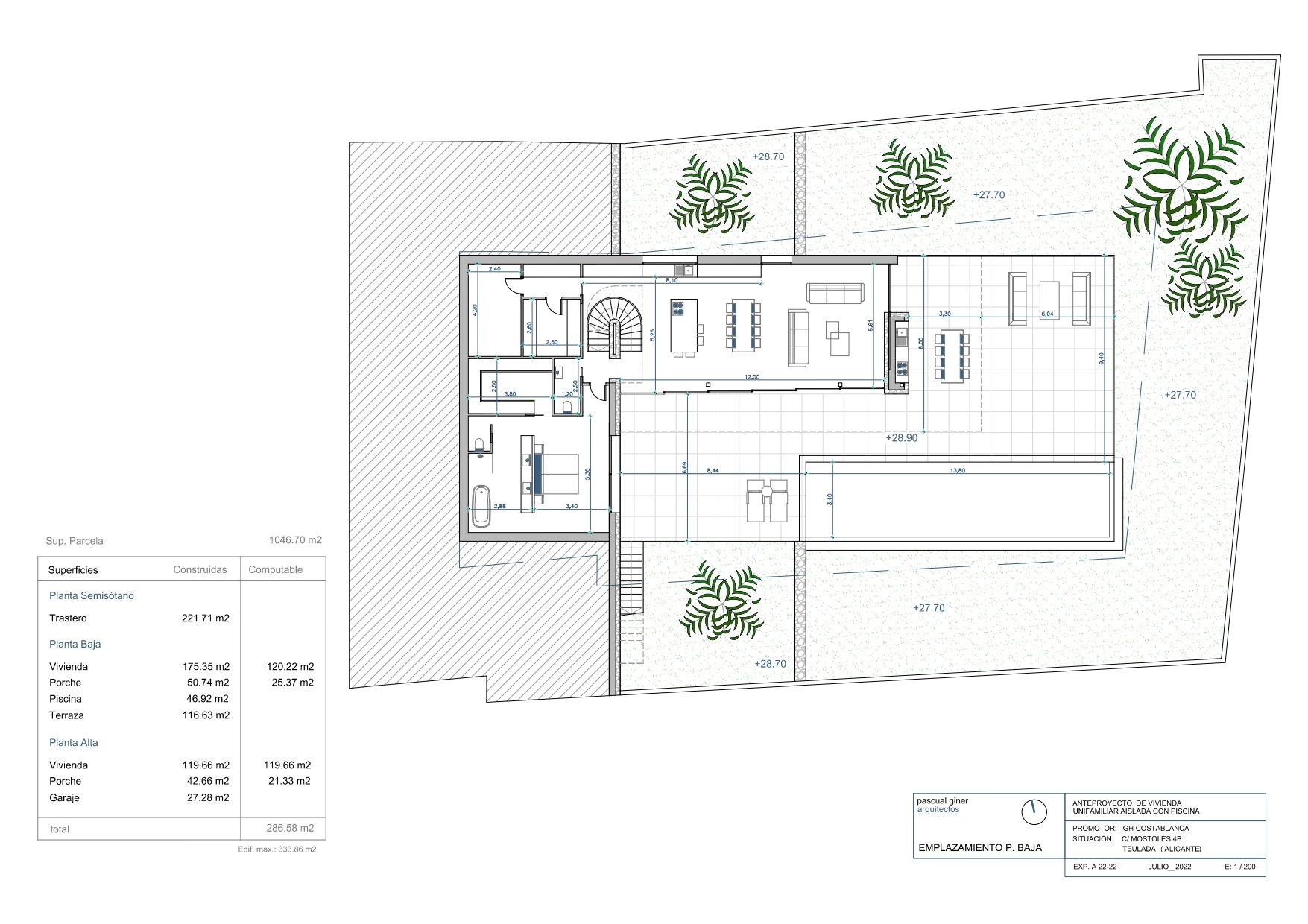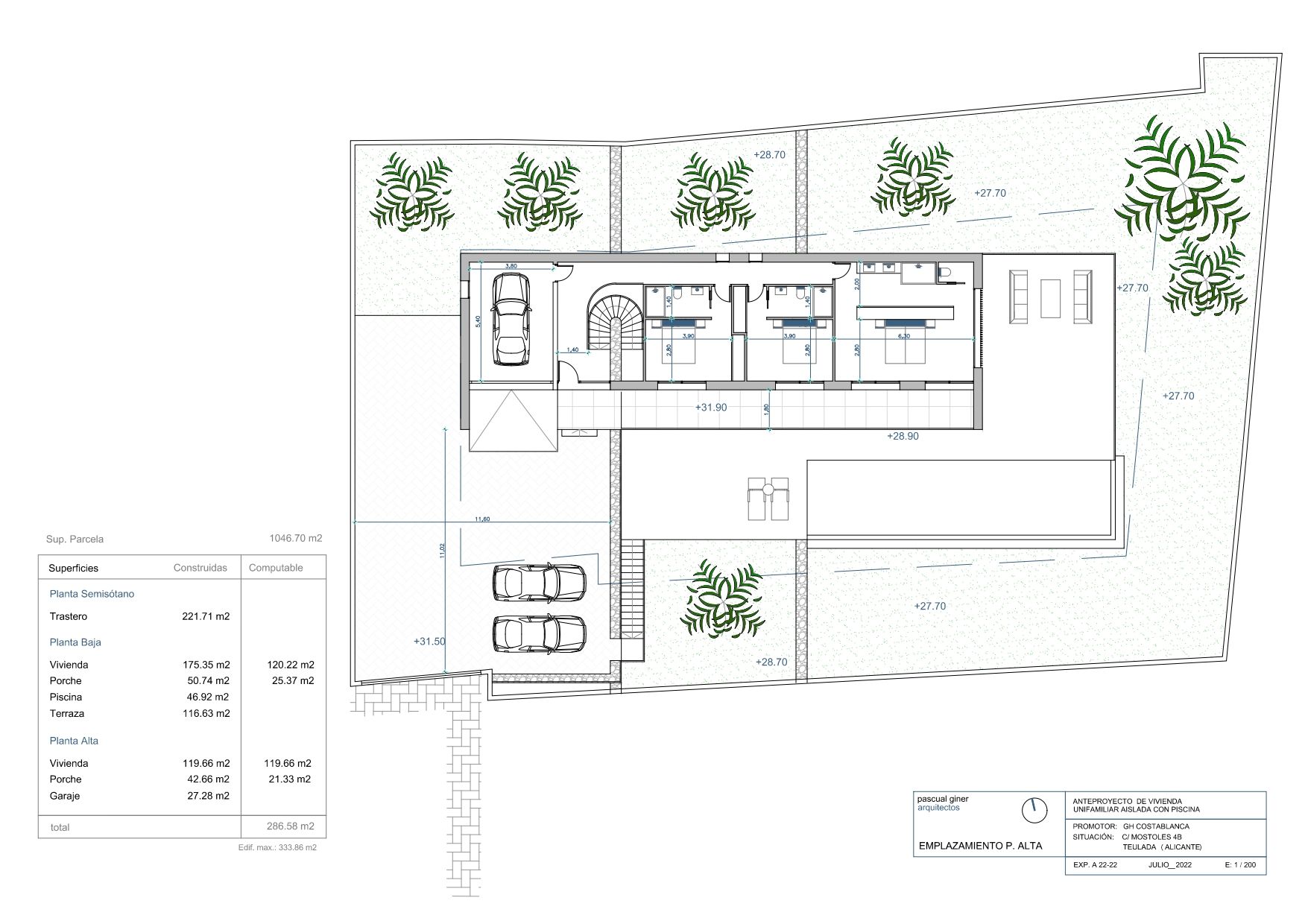 Villa in Moraira Ontdek de charme van deze prachtige luxe villa, gelegen op een perceel van 1.046 m² met twee voetgangers- en voertuigtoegangen, waarvan één via de gemeenschappelijke zone van de urbanisatie. Strategisch gelegen op loopafstand van de mooie stranden en het centrum van Moraira, biedt deze woning een uitzonderlijke woonervaring.Indeling van de villa: Deze villa, verdeeld over 3 verdiepingen, valt op door haar modern ontwerp en slimme indeling:BEGANE GROND: Ruime, lichte woonkamer naast een open keuken met kookeiland, een gastentoilet en een slaapkamer met en-suite badkamer. Buiten creëert een indrukwekkend infinityzwembad, omgeven door een ruim terras en barbecuezone, de perfecte sfeer om te ontspannen en te genieten.BOVENVERDIEPING: 3 ruime slaapkamers, elk met eigen en-suite badkamer en een privébalkon om te genieten van het prachtige uitzicht. Aan de buitenzijde van deze verdieping bevindt zich de garage, die comfort en ruimte voor uw voertuig biedt.SOUTERRAIN: Bevat een royale berging van 221 m², wat extra functionaliteit en opslagruimte toevoegt.Bijzondere extra’s: De villa is uitgerust met de beste kwaliteiten en luxe voorzieningen, waaronder:Technal-timmerwerk met veiligheidsglasVolledig uitgeruste keuken met Siemens-apparatenComplete badkamers en kranen van het prestigieuze merk RocaLED-verlichtingAerothermisch systeem voor warm water en vloerverwarmingAirconditioning (warm/koud) via leidingen in het hele huisVoorinstallatie van zonnepanelenZonnepaneel voor sanitair warm waterIngebouwde kastenElektrische rolluikenAlarmsysteem binnen, voorinstallatie voor buitenalarm en beveiligingscamera’sBuitenkant en energieclassificatie:Rechthoekig zwembad met overloopsysteemBarbecuezoneWasruimtePerfect aangelegde tuinAutomatische toegangspoortenEnergieklasse AZuidelijke oriëntatieDit project maakt deel uit van een kleinschalige ontwikkeling van zes moderne woningen, elk met eigen parkeerplaats. Gelegen op perceel 4, biedt dit project een unieke kans voor wie op zoek is naar een luxe woning in een exclusieve en rustige omgeving.
