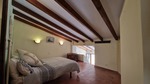 Entrance through large doors into an open-plan layout. A generously sized kitchen and living room lead out through a passage to the outdoor courtyard. Here, there is a covered area, providing a great place to relax. From the living room, stairs lead to a small dining area. A short flight of stairs then continues to the two bedrooms and family bathroom. There is also a terrace off one of the bedrooms with views over the countryside. Furthermore there is another floor in the loft and this equals as further sleeping rooms when guests arrive. The townhouse is quirky, comes also with a garage space and would make an excellent lock-up-and-go property.
