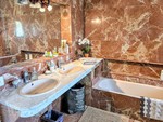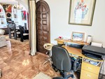 Deze villa ligt in de rustige woonwijk Benimeit in Moraira. De woning is verdeeld over twee verdiepingen met een interne trap en ligt op een groot hellend perceel. Er is parkeergelegenheid voor twee auto’s buiten de poort en parkeergelegenheid voor meerdere auto’s/voertuigen buiten de villa. Vanaf de parkeerplaats is er een pad en vervolgens zes treden naar het balkon waar de voordeur zich bevindt. Je komt de villa binnen in een kleine hal met het gastentoilet, van hieruit kom je in een zeer grote wooneetkamer met open haard, balkenplafond en veel traditionele kenmerken. Aan de rechterkant door een boog is de keuken met blauwe en witte kasten en Blue Pearl granieten werkbladen. De apparatuur bestaat uit een oven, gaskookplaat, afzuigkap, vaatwasser en koelkast met vriesvak. Verderop in de hal is de achterdeur naar de open terrassen en de barbecueplaats, en dan kom je in de grote slaapkamer, een grote kamer met ingebouwde kasten en een boog die leidt naar de ruime en-suite badkamer met twee wastafels, bad en douche. Via openslaande deuren in de woonkamer kom je op het halfronde terras met glazen gordijnen en prachtig uitzicht op zee en het platteland, een heerlijke plek om te dineren of te ontspannen. Links van de woonkamer is een kantoorruimte op de overloop bovenaan de trap, onderaan de trap is een afsluitbare deur, handig als je de twee woongedeeltes wilt scheiden. De begane grond heeft ook een zeer grote woon/eetkamer met een open keuken, hetzelfde ontwerp als de keuken boven en met dezelfde apparatuur. Naast de woonkamer zijn er twee grote slaapkamers met en-suite badkamers, nog een tweepersoonsslaapkamer en een doucheruimte. Een van de slaapkamers heeft toegang tot de parkeerplaats van het huis en een andere heeft toegang tot een opslagruimte onder het huis. Vanuit de woonkamer is er een deur naar het open terras waar je een bijkeuken en de trap naar het zwembad vindt. Het zwembadterras biedt veel ruimte voor ligbedden en heeft een zwembad van 11 × 3 m. Er is een grote lager gelegen tuin onder het zwembad die natuurlijk is gelaten.- Belangrijkste punten:- Gebouwd: 1979- Eigenaars sinds 2007- Uitzicht op zee en het platteland- Centrale verwarming op gas- Airconditioning in alle slaapkamers- Houtkachel- Alarm- Internet beschikbaar- Gedeeltelijk dubbele beglazing- Enkele rolluiken- Meubilair inbegrepen- Jaarlijkse belastingen 1.200€ (onroerende voorheffing en afvalbelasting totaal)- Afstanden:- Winkelcentrum 1.9km- Golf 3.4km- Centrum 3.7km- Internationale supermarkt en een ruime keuze aan restaurants 4km- Toegang tot de snelweg in Benissa 7,5km- Als je op zoek bent naar een grote traditionele villa met uitzicht op zee om te renoveren in je eigen stijl, zoek dan niet verder !!!