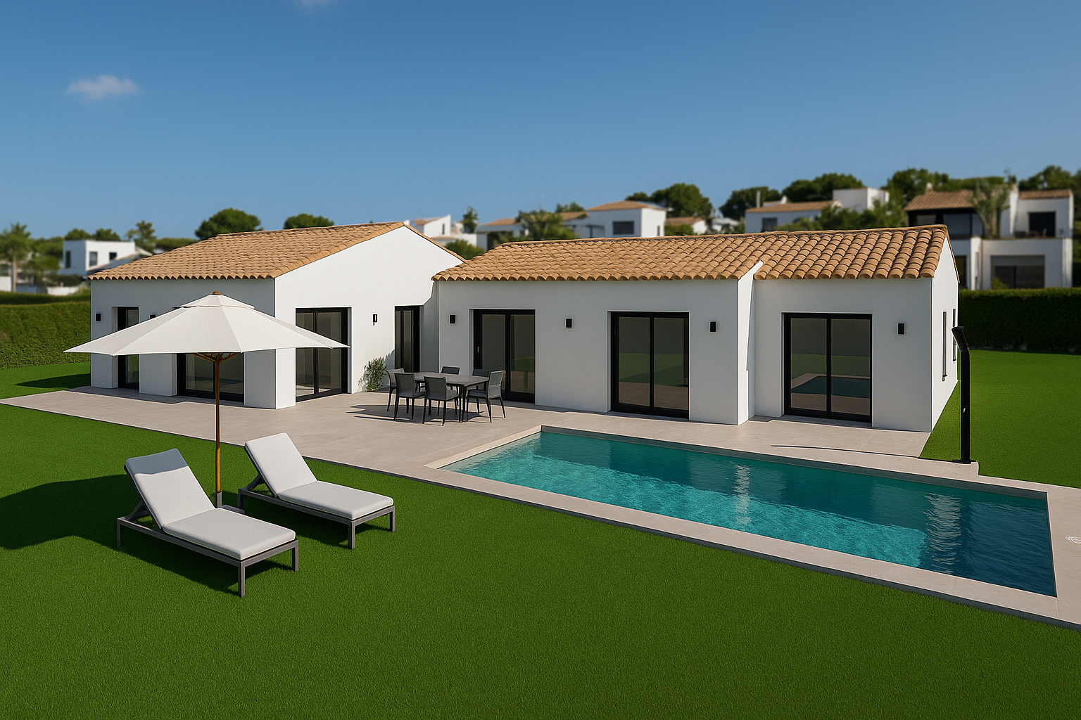 Brand-new, KEY-READY, Modern One-Level Villa in Javea, Costa Blanca This contemporary villa is currently under construction on a generous 1,000 m² plot in the peaceful residential area of Piver, Javea. Ideally situated just a short drive from the historic town center and the vibrant Arenal beach, it offers the perfect blend of privacy, comfort, and convenience. Designed entirely on one level, the villa features a spacious, open-concept layout that flows naturally between indoor and outdoor living areas. Large windows and sliding doors fill the interior with natural light, creating an airy and inviting atmosphere — perfect for modern living and entertaining. The home includes 4 spacious bedrooms and 4 bathrooms, 2 of which are en-suite, offering flexibility for families and visiting guests. The open-plan kitchen is fully equipped and connects effortlessly to the bright living area. A separate laundry room adds everyday practicality. Outdoors, the villa impresses with both open and covered terraces, a private 35 m² pool and a fenced garden — all included in the price. A double carport provides sheltered parking with easy access. Key Features: 4 bedrooms and 4 bathrooms (2 en-suite) Open-plan fully equipped kitchen + dedicated laundry room One-level design with seamless indoor-outdoor flow 35 m² private pool Open andamp; covered terraces Fenced garden Carport for 2 cars Looking for a modern new-build villa ready soon? Call now to book your viewing and make this dream home yours!