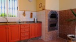 Gebouw met toegang vanuit de keuken tot een barbecueplek met spoelbak en oven. Zwembad en tuin met buitenverlichting. Toegangspoorten tot het terrein en een garage met gemotoriseerde deuren.