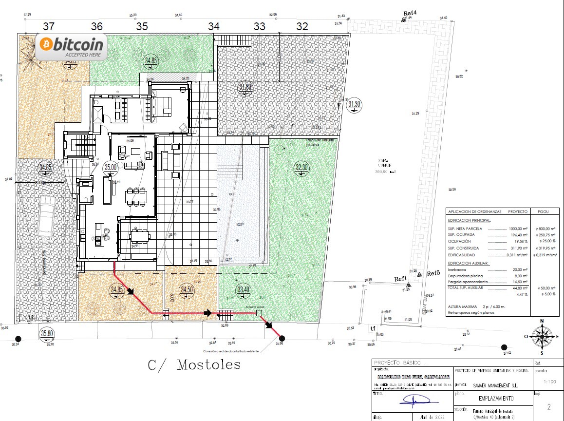 BEGANE GROND (147.30m²): Ruime lichte woonkamer naast de open keuken met kookeiland, een gastentoilet en een slaapkamer met en-suite badkamer. Buiten vinden we het oogverblindende overloopzwembad, omgeven door een ruim terras en een barbecue.