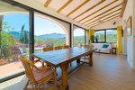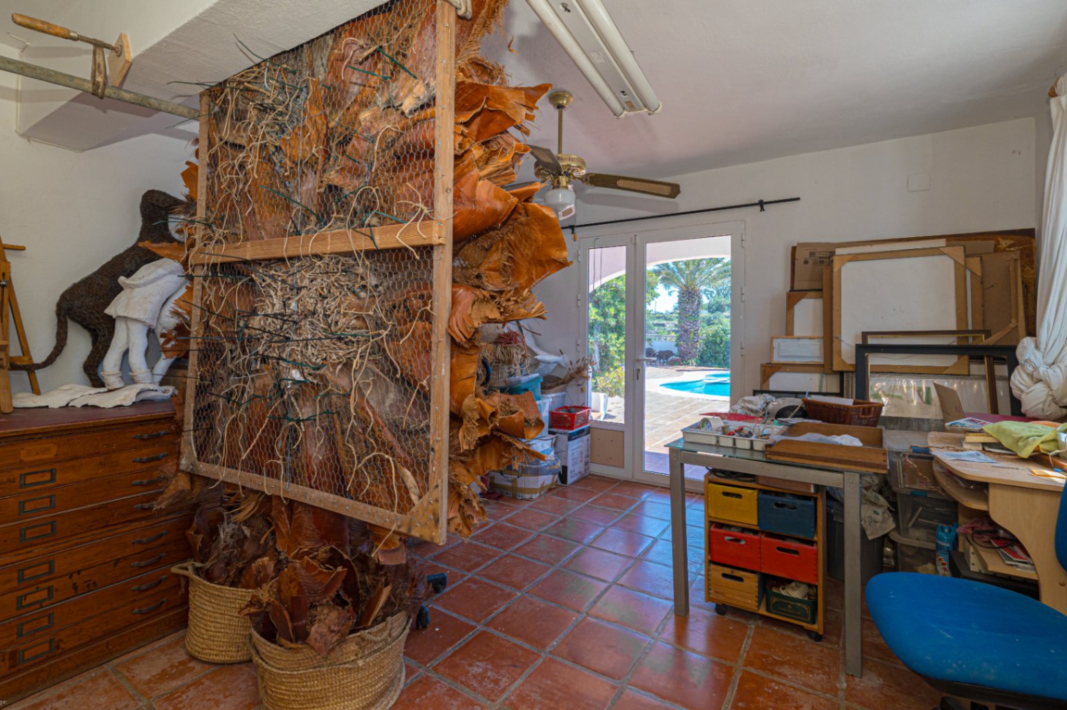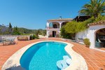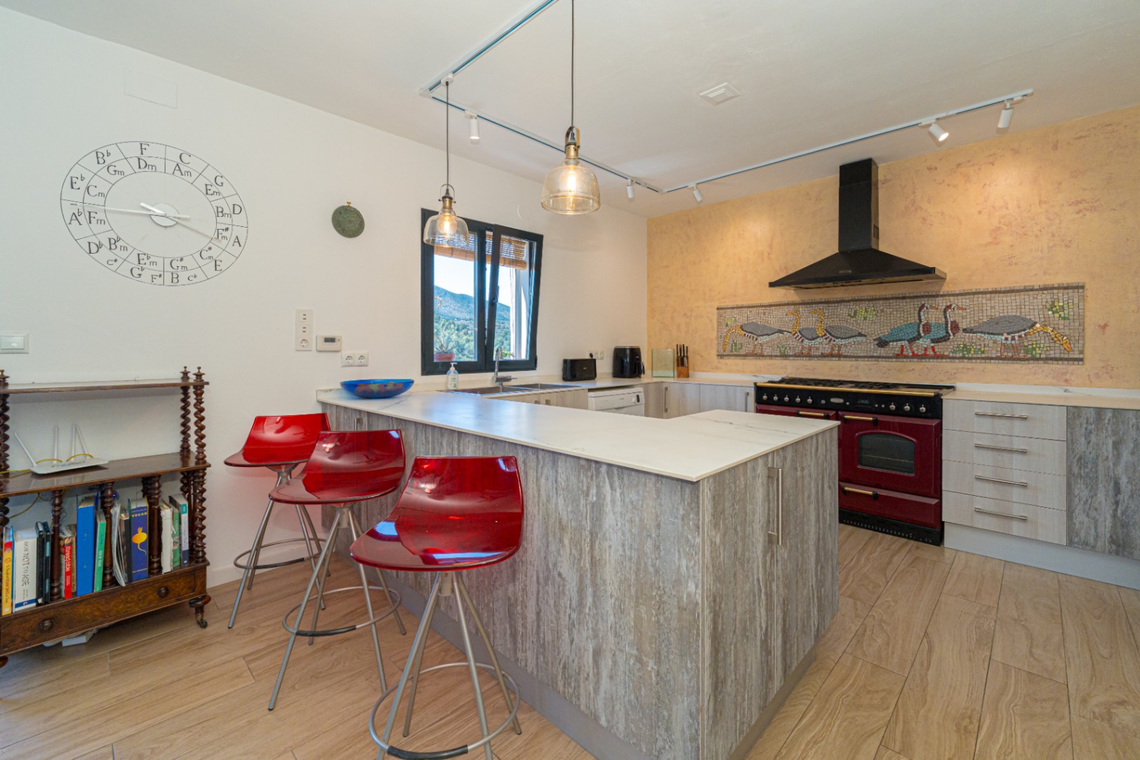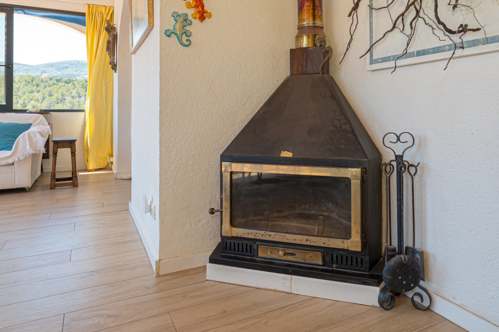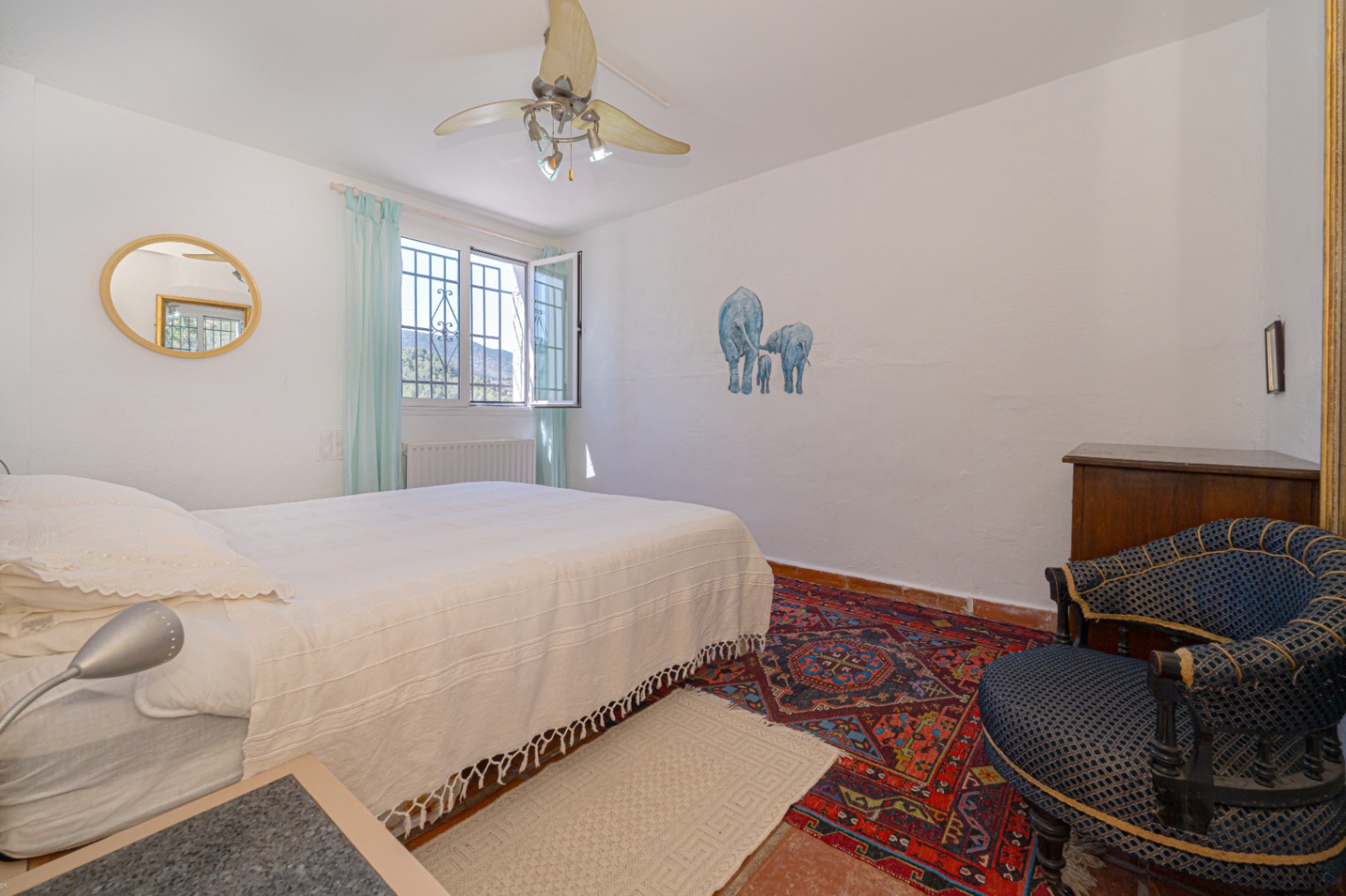 Prachtige vrijstaande landelijke woning op het zuiden met spectaculair uitzicht op de bergen, gelegen op een zeer rustige locatie op het platteland, maar toch op slechts 10 minuten rijden van de steden Benissa en Calpe. Deze unieke woning in finca-stijl heeft een rustieke charme en is recentelijk gemoderniseerd met ruime accommodatie, bestaande uit een open overdekte chill-out naya met dubbele openslaande deuren naar een glazen overdekte naya met hoge balkenplafonds, een houtkachel, twee plafondventilatoren, grote schuifdeuren naar een open zonneterras met prachtig panoramisch uitzicht op de bergen op het zuiden, een grote lichte en luchtige open woonkamer van 90 m² met eethoek met houtkachel, houten balkenplafonds, twee plafondventilatoren en een volledig ingerichte keuken met aga-fornuis en ontbijtbar. Een gang leidt naar twee tweepersoonsslaapkamers en een familiedouche. Een trap leidt naar de master bedroom suite, met schuine plafonds, een ensuite badkamer met een bad en een aparte inloopdouche, en extra grote opslagruimtes. Vanuit de woonkamer leidt een interne trap naar beneden naar een zelfstandig appartement met twee slaapkamers, een familiedouche, een volledig ingerichte keuken en een chill-out eetkamer, met openslaande deuren naar een eigen overdekte naya die leidt naar het zonneterras bij het zwembad. Buiten vindt u een prachtig niervormig zwembad met een groot zonneterras en een barbecuecasita. Het prachtige perceel van 4389 m² heeft een werkplaats/opslagruimte, twee privéopritten, één met een dubbele garage en de andere met een dubbele carport, en voldoende parkeergelegenheid voor een wagenpark of campers. Het pand heeft stallen met een vlakke weide voor paarden en is de ideale uitvalsbasis om te paardrijden of met de hond te wandelen door het prachtige landschap. Het pand is voorzien van dubbele beglazing, centrale verwarming met olieradiatoren en zou een perfecte permanente gezinswoning zijn. Deze woning heeft veel bijzondere kenmerken en biedt een werkelijk spectaculair uitzicht op het zuiden. Om de rustige en vredige omgeving ten volle te kunnen waarderen, is een persoonlijke bezichtiging essentieel.
