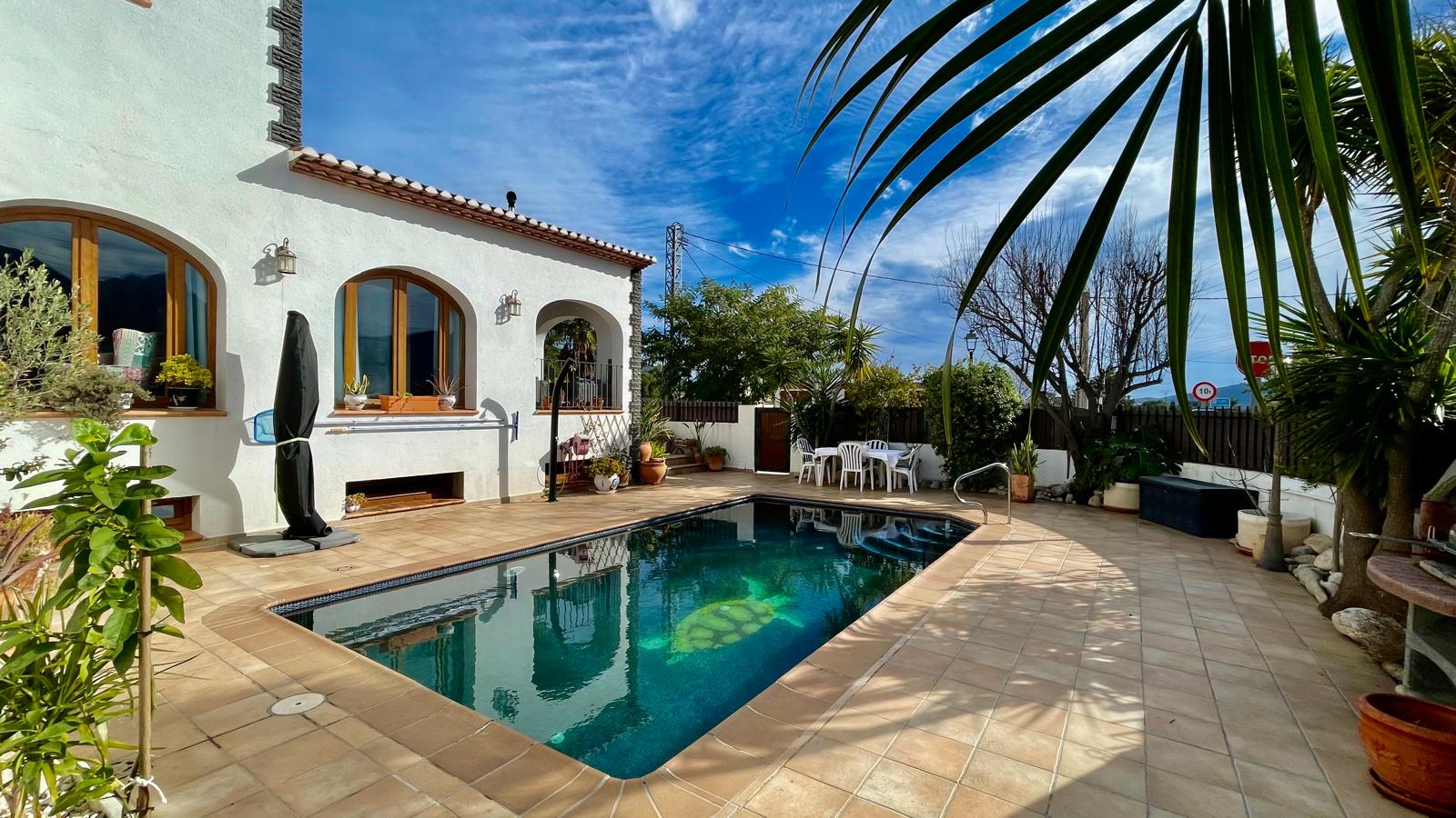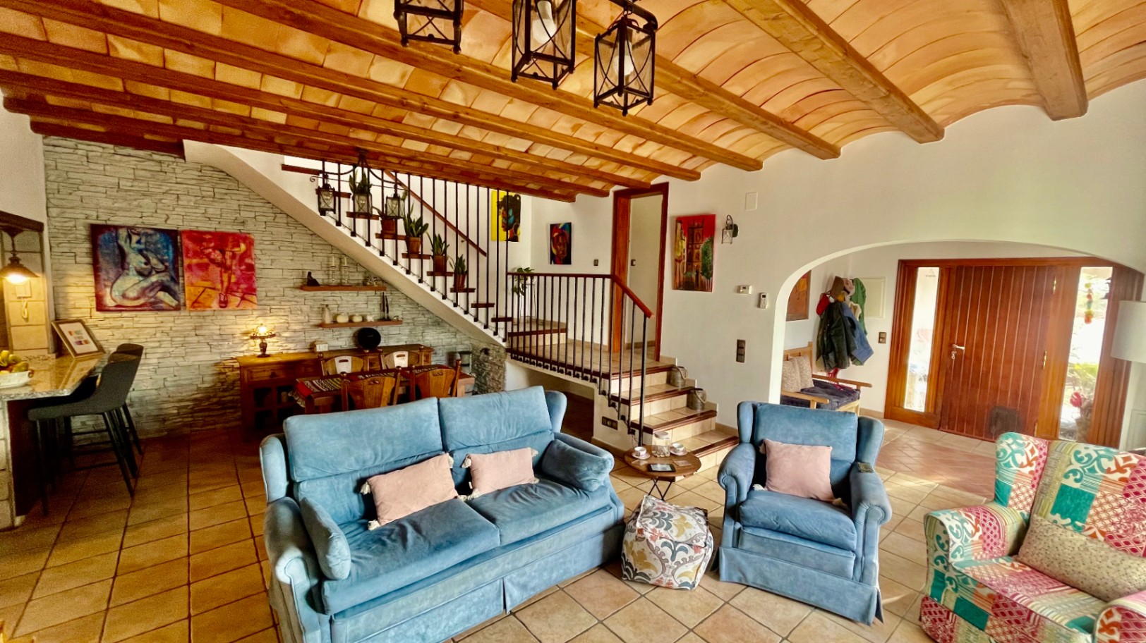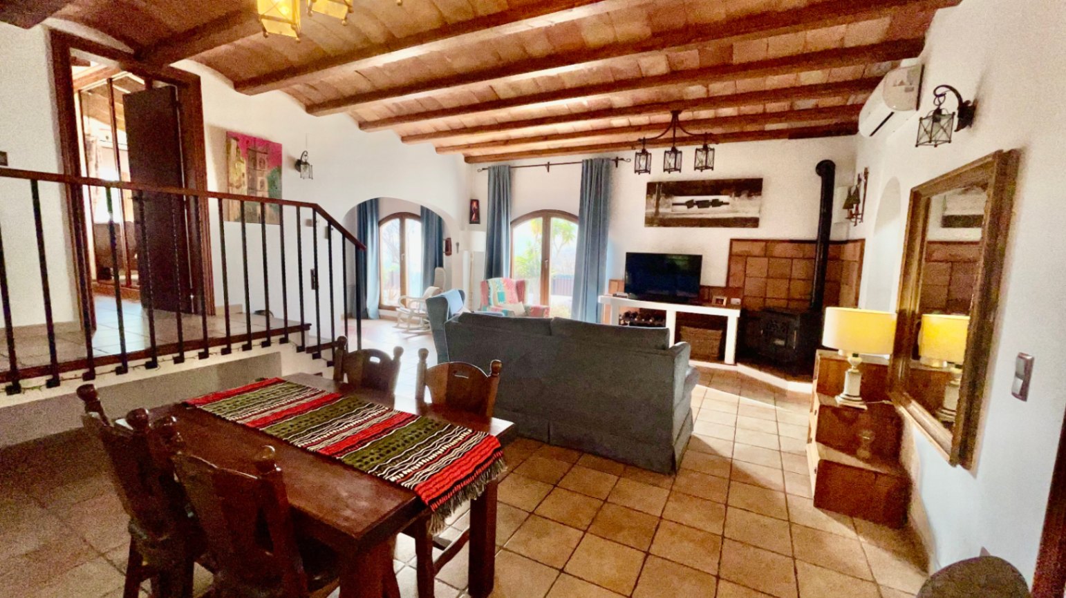 Een moderne dorpswoning met vier slaapkamers en een apart huisje met twee slaapkamers. Deze twee prachtige woningen hebben hun traditionele charme behouden en bieden tegelijkertijd een unieke, eigentijdse sfeer. Deze uitzonderlijke woningen liggen op een uitstekend, privé, op het zuiden gelegen vlak perceel met adembenemend panoramisch uitzicht, op slechts 3 minuten lopen van het centrum van Alcalalí.Het hoofdgebouw bestaat uit een open overdekte galerij met houten balkenplafond en een toegangsdeur naar een open woonkamer/eetkamer van 80 m² met grote dubbele boogramen, houten balkenplafonds, hoekhoutkachel, vloerverwarming en airconditioning (warm en koud), gastentoilet, grote open volledig ingerichte keuken met ontbijteiland, bijkeuken met buitendeur naar een buitenkeuken voor paella. Vanuit de woonkamer leiden drie treden naar de hoofdslaapkamer, met schuine houten balkenplafonds, ingebouwde schuifkasten, airconditioning (warm en koud) en een en-suite inloopdouche. Op de bovenverdieping vindt u een ruime ontvangstruimte, een gang die leidt naar drie tweepersoonsslaapkamers, allemaal met schuine houten balkenplafonds, ingebouwde schuifkasten, opslagruimtes op de mezzanine en airconditioning (warm en koud). Op dit niveau heeft u een eigen doucheruimte en een extra familiebadkamer.Het hoofdgebouw beschikt over een grote ondergrondse garage van 100 m² met een elektrische deur, een aparte opslagruimte, een gastentoilet, een wijnkelder en een geluiddichte kamer, waardoor het ideaal is voor muzikanten. De garage is vanuit het hoofdgebouw bereikbaar via een interne trap.De villa heeft een zeer privé zwembad van 8 × 4,5 m met een zonneterras op het zuiden, een barbecue-chill-outruimte en gemakkelijk te onderhouden mediterrane privétuinen.Het aparte, zelfstandige gastenverblijf, dat aan het hoofdgebouw is verbonden, heeft hetzelfde spectaculaire uitzicht en beschikt over een eigen privétuin met een open, overdekte naya op het zuiden. De accommodatie bestaat uit een toegangsdeur die leidt naar een woon-/eetkamer met houten balkenplafond, warme en koude airconditioning, een aparte ingerichte keuken, gastentoilet, hal naar ruime hoofdslaapkamer met inbouwkasten, kleedruimte en warme en koude airconditioning, een tweepersoonsslaapkamer met toegang tot de beveiligde binnenplaats. Dit gastenverblijf is indien nodig toegankelijk vanuit het hoofdgebouw via de interne trap naar de garage. Het is perfect voor meerdere generaties of kan commercieel worden gebruikt, zoals nu het geval is, wat extra huurinkomsten oplevert.Beide woningen zijn voorzien van hoogwaardige dubbele beglazing en centrale verwarming met radiatoren op stookolie. Het hoofdgebouw heeft ook vloerverwarming.Een bezichtiging wordt ten zeerste aanbevolen om deze uitzonderlijke dorpswoning met privacy, gemakkelijke toegang en een unieke locatie te kunnen waarderen.