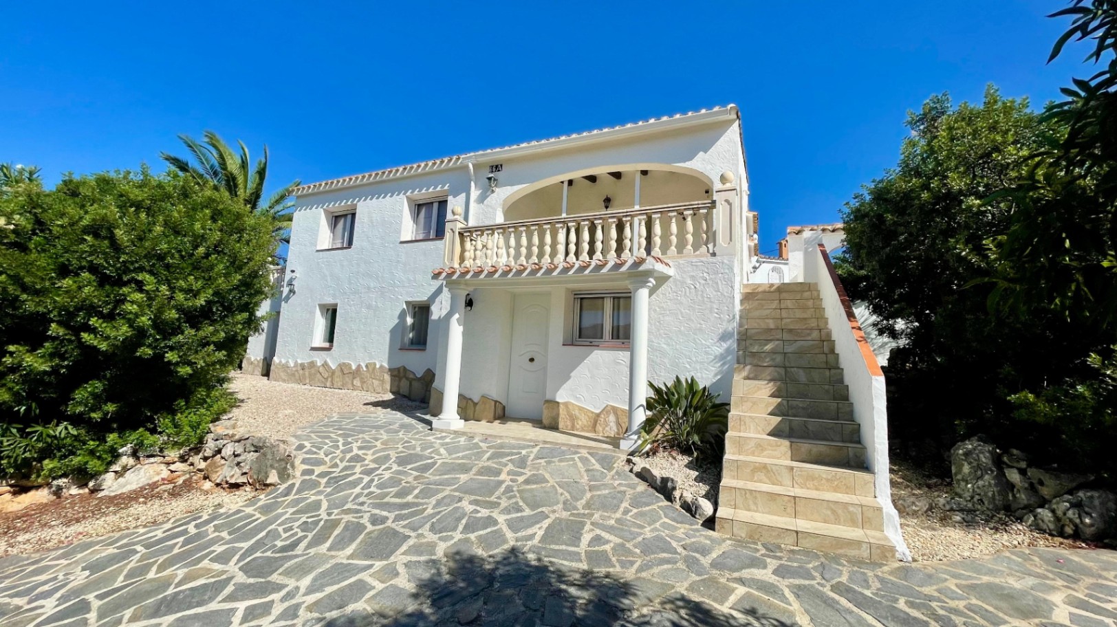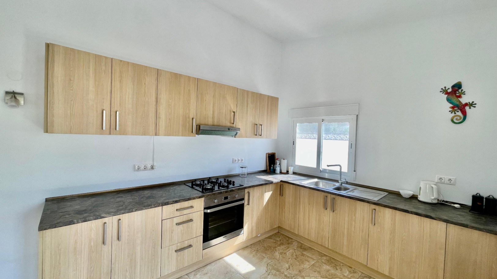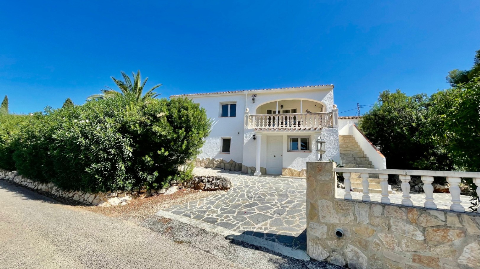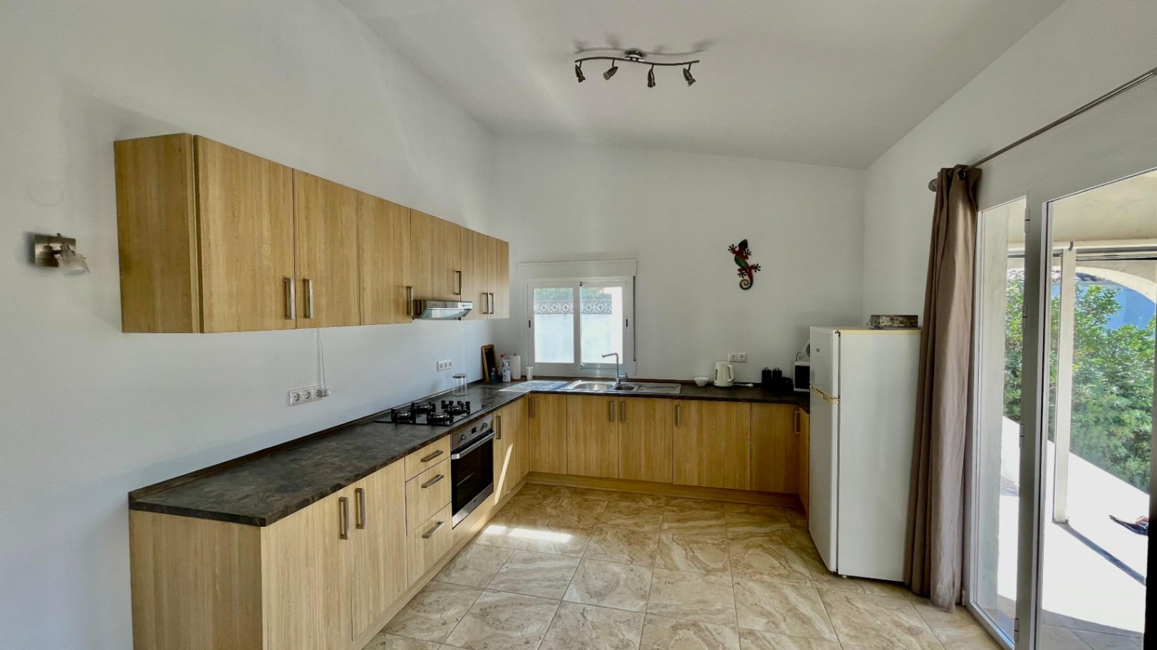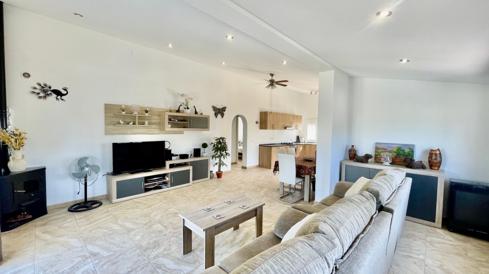 Deze moderne, gerenoveerde vrijstaande villa biedt een fantastisch panoramisch uitzicht over de Orba-vallei en verkeert in uitstekende staat. De hoofdwoning bestaat uit een open overdekte naya met houten balken en openslaande deuren naar een ruime open woon- en eetkamer van 70 m² met hoge plafonds, een vrijstaande hoekhoutkachel, plafondventilator en dubbele openslaande deuren naar een eigen zonneterras en tuin. De grote, open, volledig ingerichte keuken sluit naadloos aan op de woonruimte en creëert een lichte en gezellige omgeving. Een gang leidt naar een royale hoofdslaapkamer met vrijstaande kasten, een slaapkamer met twee eenpersoonsbedden en inbouwkasten, en een moderne familiedouchekamer. Het lagere niveau is ingericht als een groot open appartement met een eigen ingang, bestaande uit een slaapkamersuite, een chill-out kamer, een ensuite inloopdouche en een opbergkast – perfect voor gasten of verhuur. Buiten beschikt de villa over volgroeide mediterrane tuinen, privézonneterrassen die ideaal zijn voor entertainment, en parkeergelegenheid op eigen terrein. De woning is voorzien van nieuwe dubbele beglazing en biedt de mogelijkheid om, met toestemming van het gemeentehuis, een zwembad te bouwen. Deze gemakkelijk bereikbare villa zou een uitstekende permanente woning of vakantiehuis zijn, gelegen dicht bij de lokale voorzieningen van Orba, en een bezichtiging wordt ten zeerste aanbevolen om de rustige, privéligging en het prachtige uitzicht op de vallei ten volle te kunnen waarderen.