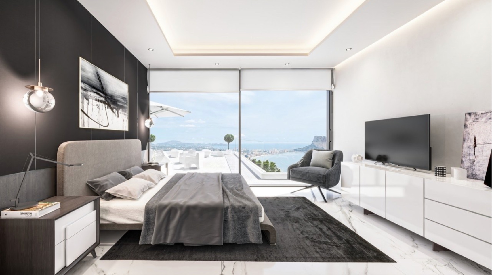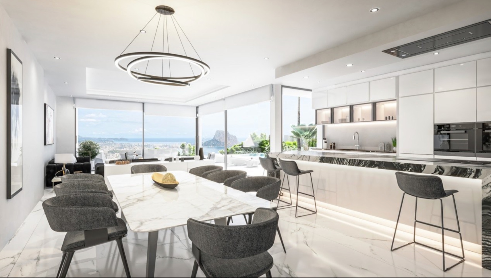Indrukwekkende Nieuwe Villa met Panoramisch Uitzicht op Zee in Mayvilla, CalpeWij presenteren u deze elegante nieuwbouw villa, gelegen in een bevoorrechte omgeving van Mayvilla, Calpe, die een indrukwekkend panoramisch uitzicht op zee, de Peñón de Ifach en de hele baai van Calpe biedt. Ontworpen in een hedendaagse architecturale stijl met hoogwaardige afwerkingen, vertegenwoordigt deze eigendom de perfecte samensmelting van luxe, comfort en technologie.De woning is verdeeld over drie verdiepingen en beschikt over 4 ruime slaapkamers, allemaal met en-suite badkamers, en is uitgerust met een geïntegreerd domoticasysteem waarmee u gemakkelijk alle functies van het huis kunt bedienen. De hoofdverdieping herbergt lichte woonruimtes met directe toegang tot een terras met een infinity zwembad, ideaal om het uitzicht en het mediterrane klimaat het hele jaar door te genieten.De eigendom beschikt ook over een interne lift, vloerverwarming, airconditioning, een fraai aangelegde tuin, een barbacuezones, chill-out en een ruime garage. Alles is bedacht om een comfortabele, verfijnde en privé woonervaring te bieden.Belangrijkste kenmerken:4 slaapkamers met en-suite badkamersVerdeeld over 3 verdiepingenInfinity zwembad met uitzicht op zeeDomoticasysteem en liftFraai aangelegde tuin, chill-out gebied en BBQPrivégarageEen unieke villa in Calpe voor degenen die willen leven in stijl, rust en met ongeëvenaard uitzicht op de Middellandse Zee.