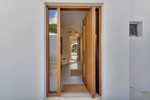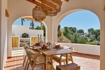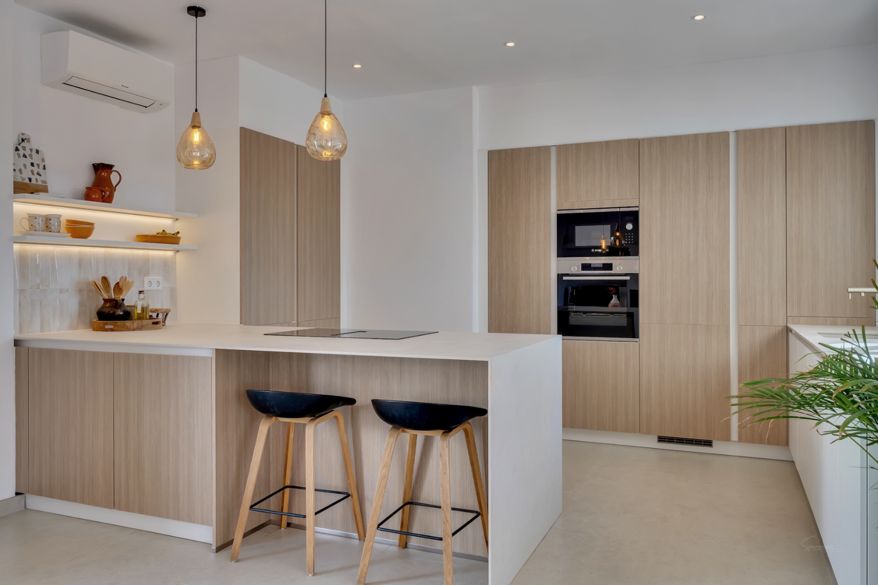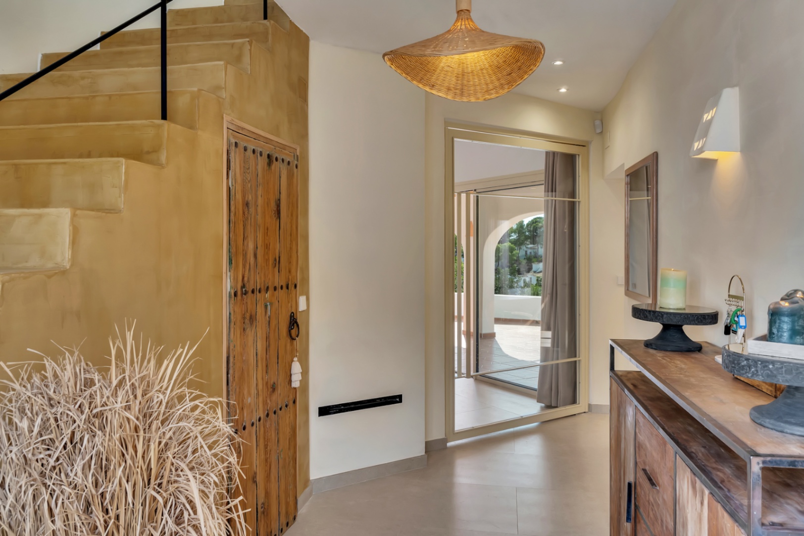 Tijdloze mediterrane villa met prachtig zeezicht, volledig gerenoveerd en op slechts 5 minuten lopen van het centrum van Moraira!Deze op het zuiden gelegen villa bevindt zich in een van de meest rustige en exclusieve woonwijken van Moraira, in een stille straat en slechts enkele honderden meters van het centrum en het strand. Moraira staat bekend om zijn ontspannen sfeer, uitstekende restaurants, boetiekjes en charmante oude binnenstad, waardoor het ideaal is om er het hele jaar door te wonen of vakantie te vieren. De nabijheid van voorzieningen, supermarkten en watersportactiviteiten maakt deze locatie extra aantrekkelijk en comfortabel.De elegante villa van circa 250 m² is volledig gerenoveerd met hoogwaardige materialen en een tijdloos ontwerp dat mediterrane details combineert met een eigentijdse Ibiza-touch. Gelegen op een perceel van 735 m² biedt het een adembenemend uitzicht op de beroemde rots van Calpe, de Peñon d’Ifach, en het turquoise water van de zee.Bij binnenkomst via de videogestuurde toegangsdeur geniet u direct van de onderhoudsvriendelijke tuin en de indrukwekkende Irroco-voordeur. De ruime inkomhal met gastentoilet leidt naar een open woonkamer, eetkamer en keuken met kookeiland. De keuken is uitgerust met hoogwaardige Bosch-apparatuur en heeft een elegant, sober ontwerp. Een pelletkachel (met wifi-bediening) zorgt voor warmte en sfeer in de woonkamer. Dankzij grote ramen stroomt natuurlijk licht door de woning en heeft u toegang tot twee terrassen: aan de voorzijde een prachtige naya met bogen en spectaculair uitzicht op zee en de Peñon, en aan de achterzijde een intieme patio omgeven door groen, ideaal voor ontbijt in de zon of verkoeling op warme dagen.Op de hoofdverdieping is er een ruime tweepersoonsslaapkamer met trendy inbouwkasten en een en-suite microcement badkamer met inloopdouche. Deze lichte slaapkamer biedt directe toegang tot het terras.Op de bovenverdieping bevindt zich een multifunctionele ruimte met toegang tot twee ruime slaapkamers, elk met eigen badkamer. De hoofdslaapkamer is een ware oase met panoramisch uitzicht, een open badkamer met douche en vrijstaand bad, een dressing en een overdekt privéterras. De derde slaapkamer heeft eveneens inbouwkasten en een microcement badkamer met inloopdouche, tot in detail afgewerkt.De buitenruimte is zeer doordacht: een zonneterras met stijlvolle parasols, een overdekte barbecueplaats en een volledig privé gelegen zwembad dat de hele dag zon krijgt. Op hetzelfde niveau als het zwembad is een volledig uitgerust gastenappartement met badkamer, zithoek en koffie-corner. Verder is er een aparte wasruimte, berging en twee parkeerplaatsen op eigen terrein.De villa is uitgerust voor maximaal comfort het hele jaar door en volledig geïsoleerd. Er is airconditioning in alle kamers (koelen, verwarmen, ontvochtigen,…), ramen met Reynaers-aluminiumkozijnen en veiligheidsglas met zonwering, elektrische rolluiken, insectenhorren, zonnepanelen, zonneboiler, alarmsysteem met camera’s en opnamefunctie, en een pre-installatie voor het opladen van elektrische auto’s.Belangrijkste kenmerken:• Gelegen op 600 meter van het centrum• Prachtig uitzicht op zee en Peñon D’Ifach• Op het zuiden gelegen• 3 slaapkamers met eigen badkamer + volledig uitgerust gastenverblijf• Entreehal met gastentoilet• Grote naya en patio• Onderhoudsvriendelijke tuin• Privézwembad freeform• 2 parkeerplaatsen op eigen terrein• Energiezuinige villa!Een karaktervolle villa, ontworpen voor mensen die op zoek zijn naar kwaliteit, privacy en nabijheid van zee en centrum, zonder concessies aan het uitzicht. Ideaal als permanente woning of vakantiehuis. Neem nu contact op om deze villa te bezichtigen!