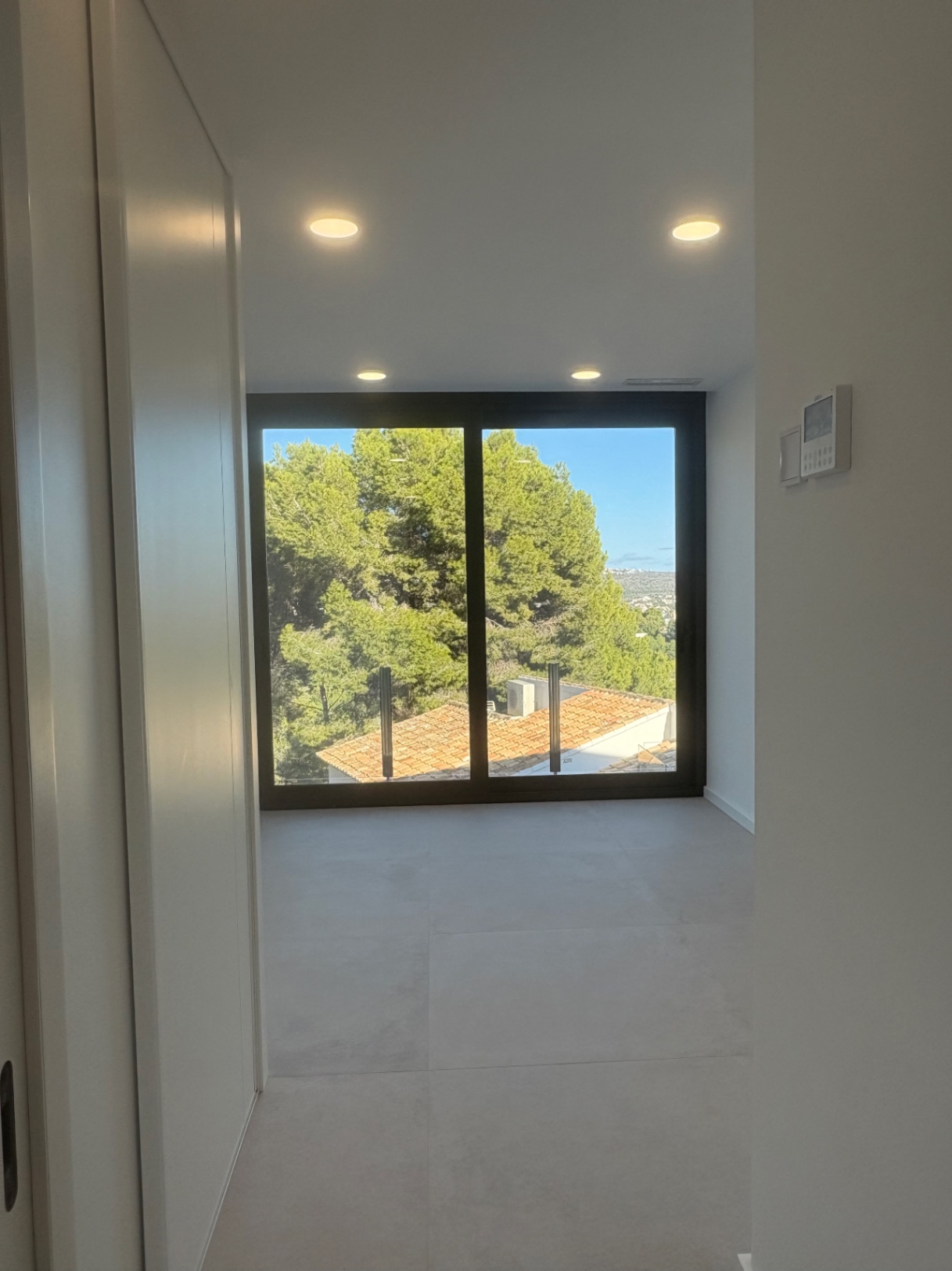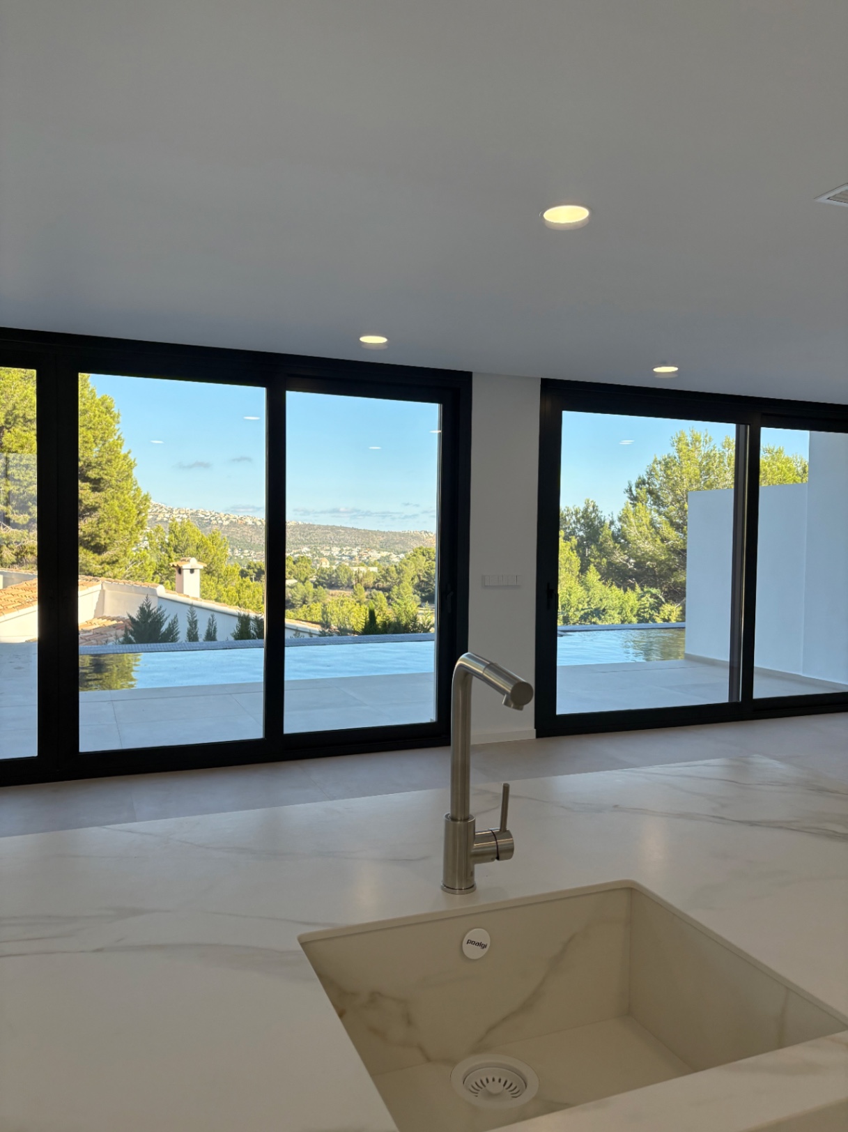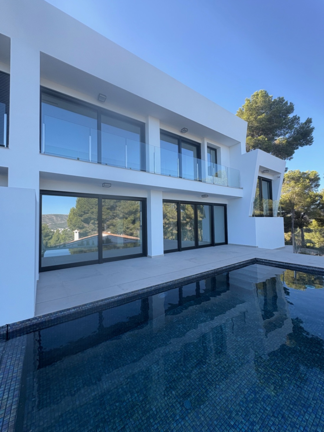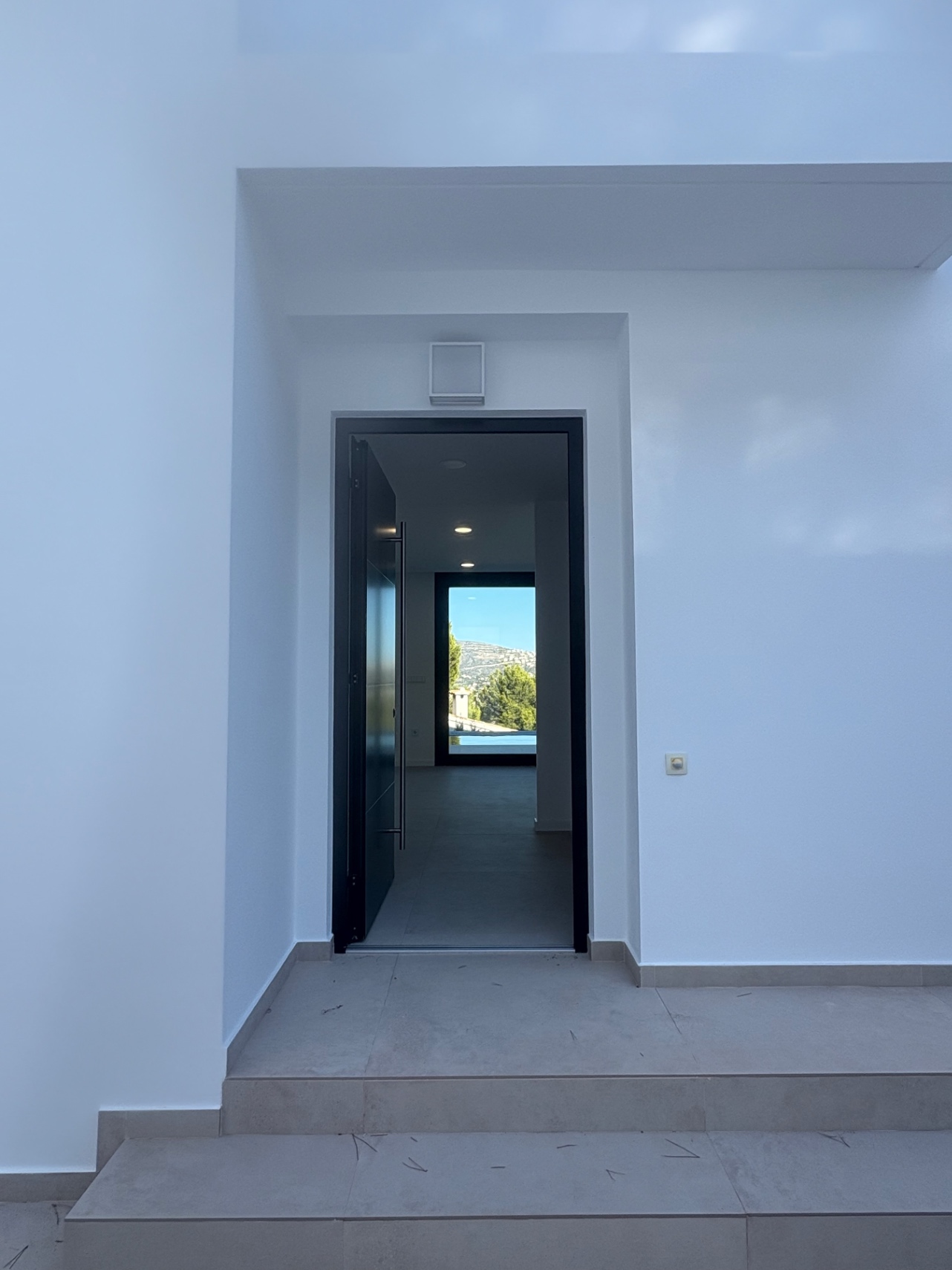 Prachtige nieuwbouwvilla met open zicht op zee en op de bergen en klaar om in te trekken in Benimeit, Moraira.Droomt u van een moderne nieuwbouwvilla die klaar is om in te trekken? Deze twee-onder-een-kapwoning is dé perfecte woning voor u! Gelegen in een rustige straat bovenin Benimeit biedt deze woning prachtige uitzichten en bent u toch in no-time bij alle voorzieningen, het centrum en het strand van Moraira. Deze nieuwbouwvilla-wijk biedt tevens een zeer goede verbinding naar het centrum van Teulada, ideaal voor wandel- en fietsliefhebbers.Deze elegante halfopenbebouwing is gebouwd met oog voor detail en hoogwaardige afwerking. Via een elektrisch bedienbare toegangspoort betreedt u het perceel, waar plaats is voor twee voertuigen onder een schaduwzeil. Er is tevens water- en elektriciteitsaansluiting voorzien voor het schoonmaken of opladen van voertuigen.Via een trap naar beneden vinden we een handige opbergruimte en de grote voordeur om binnen te gaan in deze fantastische villa! In de ruime inkomhal is er genoeg plaats voor het opbergen van schoenen en jassen en er is ook een groot gastentoilet. Verder komen we in de riante woonkamer met verschillende raampartijen die uitnodigen van het buitenterras te gaan genieten alsook van het infinity zwembad. Hier kunt u genieten van de prachtige vergezichten in een groene, rustige omgeving.De open keuken sluit naadloos aan op de eet- en woonruimte en is volledig uitgerust met hoogwaardige inbouwapparatuur en marmeren top. Een aparte voorraadruimte biedt extra functionaliteit en comfort. Op het eerste halve niveau bevindt zich de eerste ruime slaapkamer met inbouwkasten en ensuite badkamer met douche. Een paar trappen verder naar boven vinden we op deze verdieping nog twee slaapkamers. De gastenkamer heeft eveneens een ensuite badkamer met ruime inloopdouche, inbouwkasten en toegang tot het balkon. En de masterbedroom geniet een zeer grote badkamer met losstaand bad en inloopdouche. Naast het prachtige uitzicht en toegang tot het balkon is er ook nog een magnifieke dressing.Het grondstuk bedraagt 508m2 en is makkelijk te onderhouden vanwege de verschillende terrassen. Desalniettemin is er ook nog ruimte voor het aanleggen van wat tuin en beplanting naar wens! Muren met prachtige natuursteen maken het af. De woning geniet pre installatie voor vloerverwarming, air conditioning, een automatisch ventilatiesysteem, dubbel glas ramen van hoge kwaliteit met elektrische rolluiken en camera’s. Daarnaast liggen er ook 12 zonnepanelen op het dak die 5kw genereren. Het complete plaatje dus!Belangrijkste kenmerken:Nieuwbouwvilla – klaar om in te trekken!Mooi open zicht met een beetje zeezicht!3 slaapkamers, 3 badkamers – en een gastentoiletPrivé infinity zwembadVloerverwarming, airconditioning en elektrische rolluiken12 zonnepanelen Parking voor 2 auto’s + bergingTuinWil u graag uw droom verwezenlijken? Neem nu contact met ons op en maak een afspraak voor het bekijken van deze parel aan de Costa Blanca!