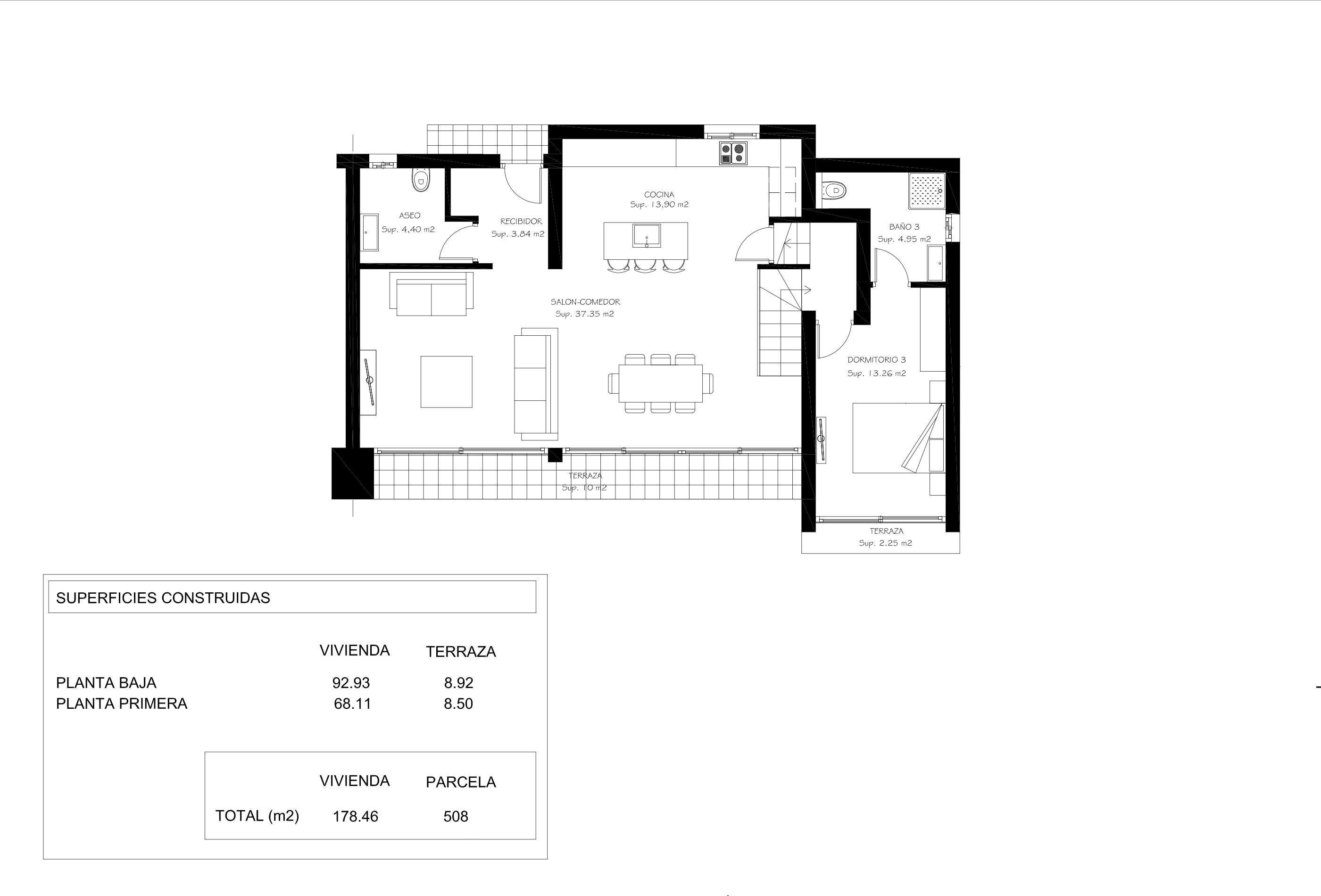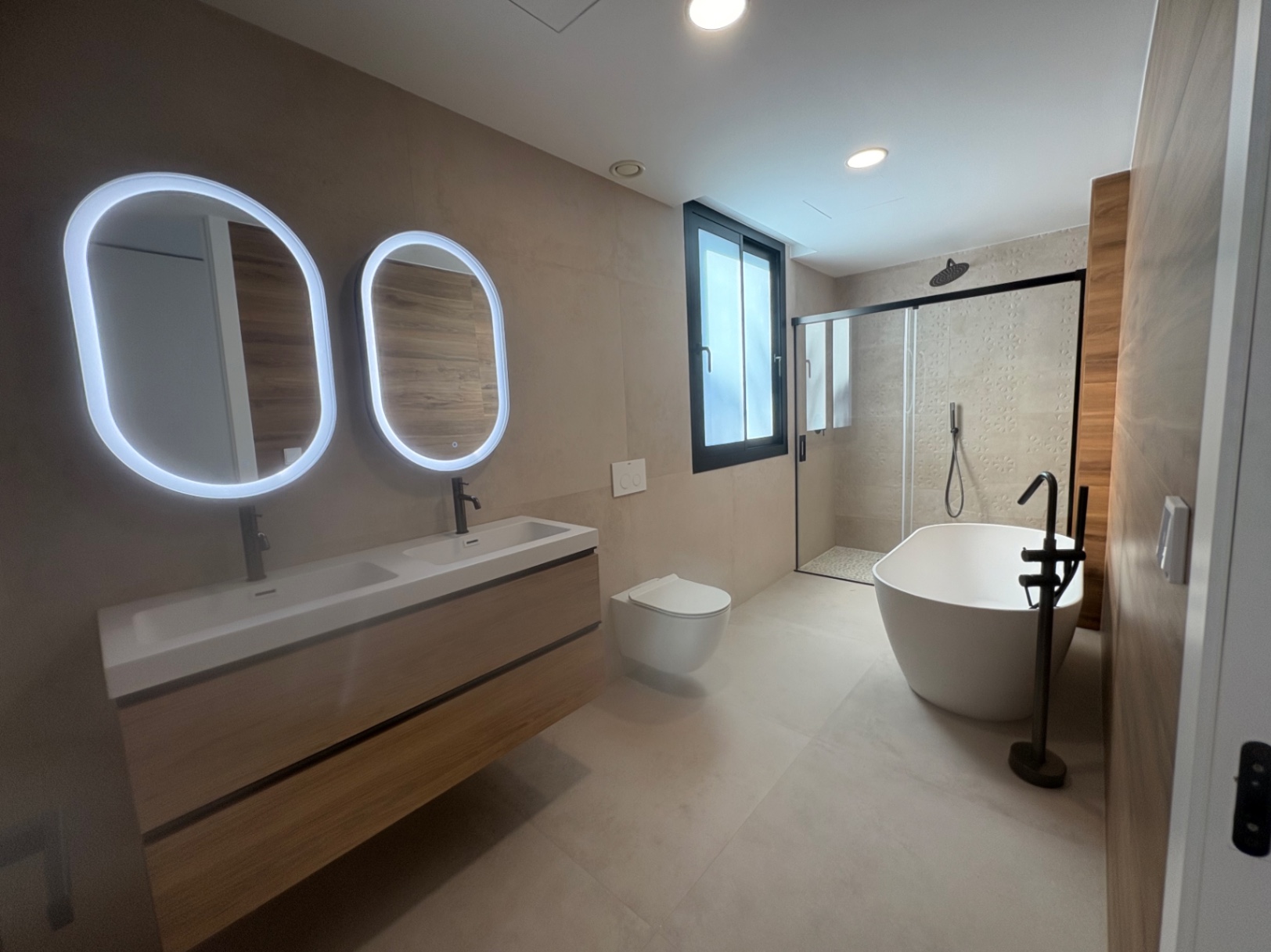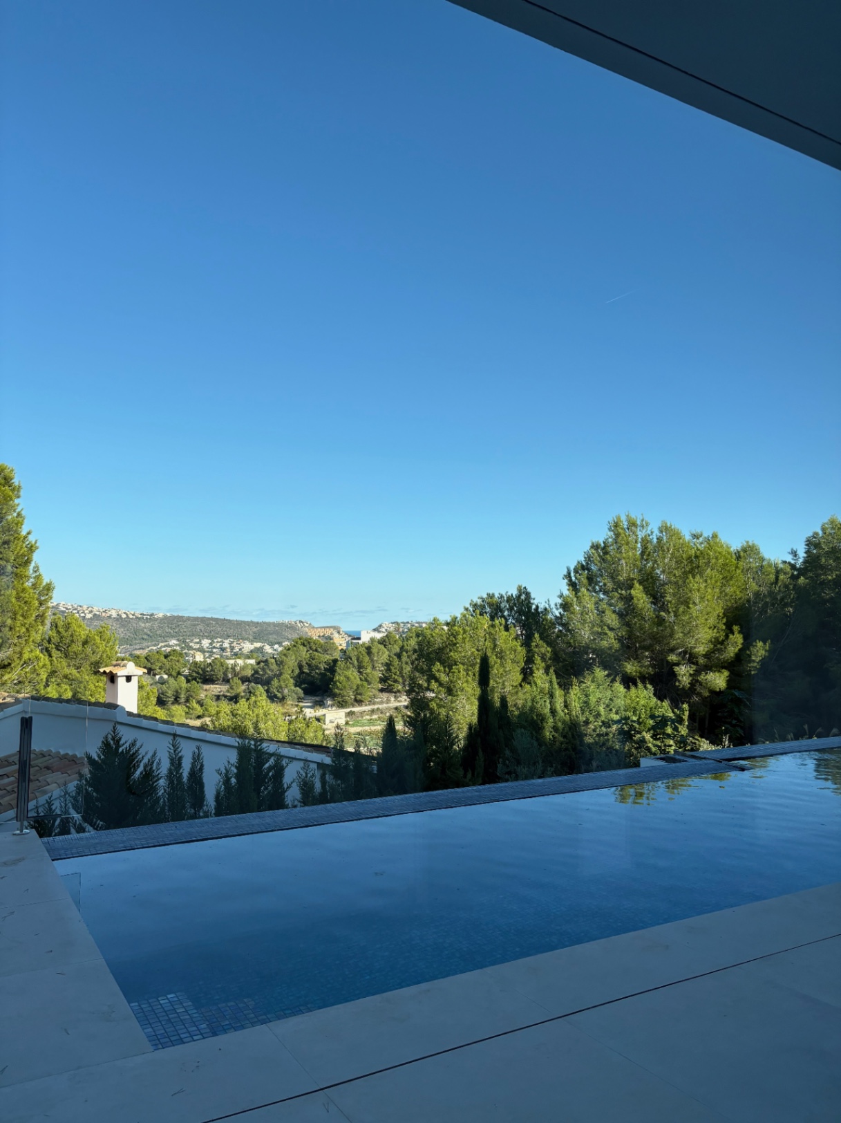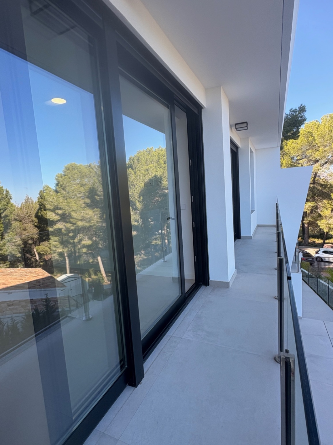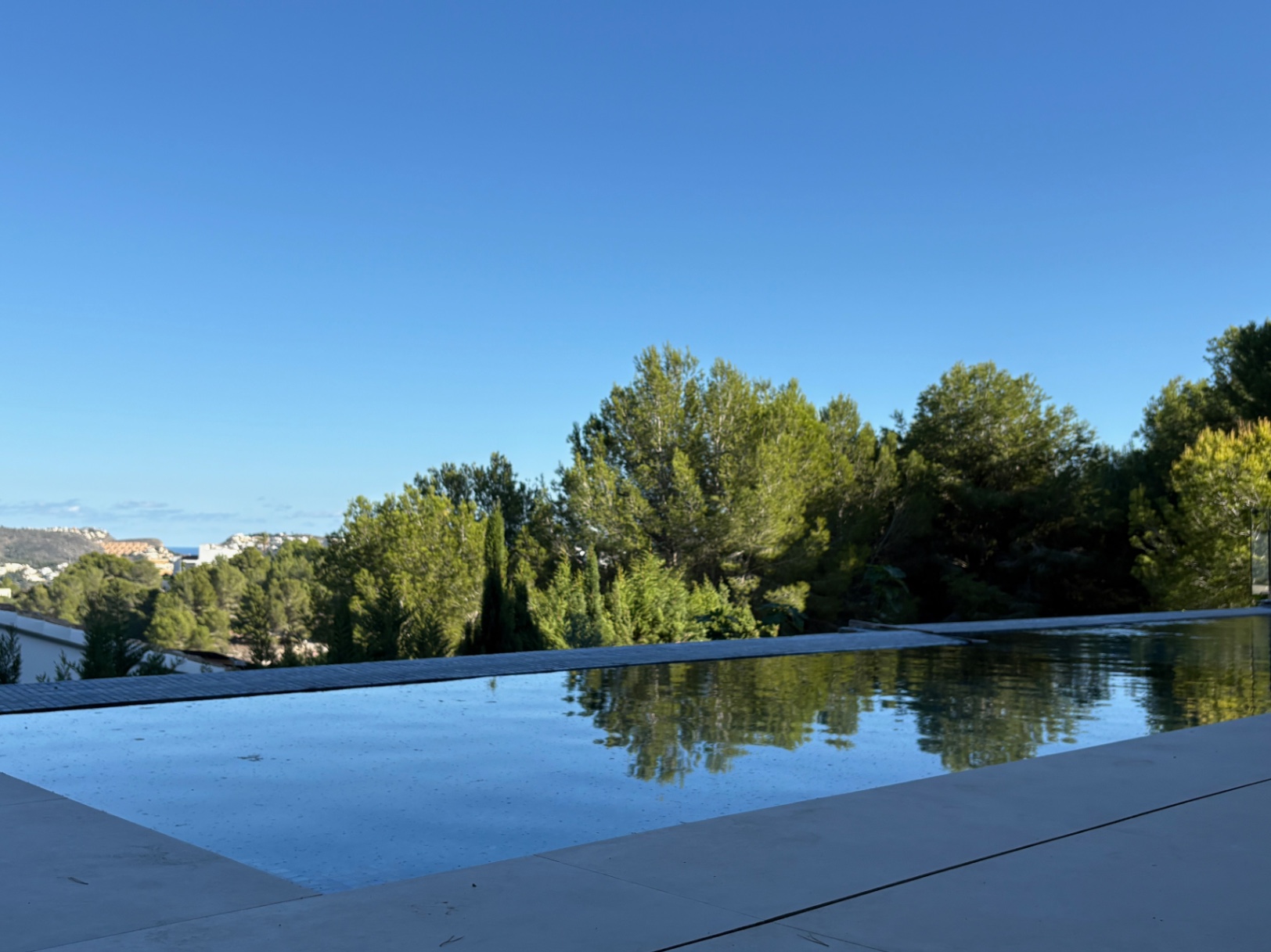 Prachtige nieuwbouwvilla met open zicht op zee en op de bergen en klaar om in te trekken in Benimeit, Moraira.Droomt u van een moderne nieuwbouwvilla die klaar is om in te trekken? Deze twee-onder-een-kapwoning is dé perfecte woning voor u! Gelegen in een rustige straat bovenin Benimeit biedt deze woning prachtige uitzichten en bent u toch in no-time bij alle voorzieningen, het centrum en het strand van Moraira. Deze nieuwbouwvilla-wijk biedt tevens een zeer goede verbinding naar het centrum van Teulada, ideaal voor wandel- en fietsliefhebbers.Deze elegante halfopenbebouwing is gebouwd met oog voor detail en hoogwaardige afwerking. Via een elektrisch bedienbare toegangspoort betreedt u het perceel, waar plaats is voor twee voertuigen onder een schaduwzeil. Er is tevens water- en elektriciteitsaansluiting voorzien voor het schoonmaken of opladen van voertuigen.Via een trap naar beneden vinden we een handige opbergruimte en de grote voordeur om binnen te gaan in deze fantastische villa! In de ruime inkomhal is er genoeg plaats voor het opbergen van schoenen en jassen en er is ook een groot gastentoilet. Verder komen we in de riante woonkamer met verschillende raampartijen die uitnodigen van het buitenterras te gaan genieten alsook van het infinity zwembad. Hier kunt u genieten van de prachtige vergezichten in een groene, rustige omgeving.De open keuken sluit naadloos aan op de eet- en woonruimte en is volledig uitgerust met hoogwaardige inbouwapparatuur en marmeren top. Een aparte voorraadruimte biedt extra functionaliteit en comfort. Op het eerste halve niveau bevindt zich de eerste ruime slaapkamer met inbouwkasten en ensuite badkamer met douche. Een paar trappen verder naar boven vinden we op deze verdieping nog twee slaapkamers. De gastenkamer heeft eveneens een ensuite badkamer met ruime inloopdouche, inbouwkasten en toegang tot het balkon. En de masterbedroom geniet een zeer grote badkamer met losstaand bad en inloopdouche. Naast het prachtige uitzicht en toegang tot het balkon is er ook nog een magnifieke dressing.Het grondstuk bedraagt 508m2 en is makkelijk te onderhouden vanwege de verschillende terrassen. Desalniettemin is er ook nog ruimte voor het aanleggen van wat tuin en beplanting naar wens! Muren met prachtige natuursteen maken het af. De woning geniet pre installatie voor vloerverwarming, air conditioning, een automatisch ventilatiesysteem, dubbel glas ramen van hoge kwaliteit met elektrische rolluiken en camera’s. Daarnaast liggen er ook 12 zonnepanelen op het dak die 5kw genereren. Het complete plaatje dus!Belangrijkste kenmerken:Nieuwbouwvilla – klaar om in te trekken!Mooi open zicht met een beetje zeezicht!3 slaapkamers, 3 badkamers – en een gastentoiletPrivé infinity zwembadVloerverwarming, airconditioning en elektrische rolluiken12 zonnepanelen Parking voor 2 auto’s + bergingTuinWil u graag uw droom verwezenlijken? Neem nu contact met ons op en maak een afspraak voor het bekijken van deze parel aan de Costa Blanca!
