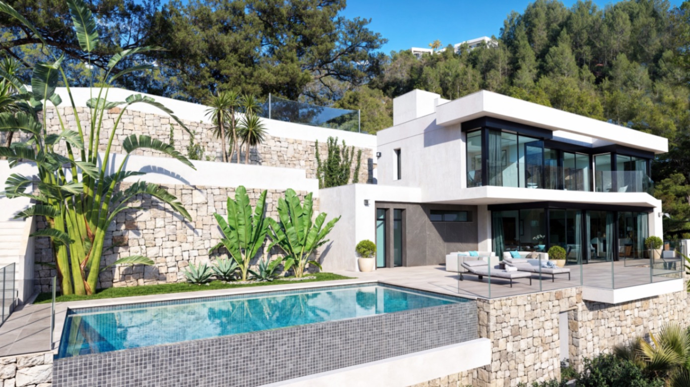 Luxe nieuwbouwvilla met bouwvergunning en panoramisch zeezicht in Racó del Galeno, Benissa CostaGelegen in de prestigieuze woonwijk Racó del Galeno in Benissa Costa, geniet deze luxueuze nieuwbouwvilla van een uitzonderlijke ligging, omgeven door natuur en met een adembenemend uitzicht op zee. Perfect gepositioneerd tussen Moraira en Calpe, biedt de woning zowel privacy als comfort, op slechts 10 minuten rijden (5 km) van de snelweg AP-7, met gemakkelijke toegang tot Alicante, Valencia en de mooiste stranden van de Costa Blanca.Deze eigentijdse villa is een waar meesterwerk van modern design, waarbij strakke lijnen, natuurlijke materialen en open ruimtes harmonieus samenvloeien tussen binnen en buiten. Vanaf elk niveau ontvouwt zich het mediterrane panorama van zee, lucht en licht. De architectuur van de villa omarmt deze omgeving met ruime terrassen en grote raampartijen die de binnenruimtes baden in natuurlijk licht.De hoofdverdieping biedt een open indeling waar de keuken met kookeiland, eetkamer en woonkamer naadloos in elkaar overlopen, wat zorgt voor een uitnodigende en elegante leefruimte — perfect voor zowel dagelijks wonen als voor gasten. De keuken is volledig uitgerust met hoogwaardige apparatuur en verfijnde afwerking, waarbij functionaliteit en stijl perfect samengaan. Elke slaapkamer beschikt over een en-suite badkamer en directe toegang tot privéterrassen, terwijl de hoofdslaapkamer geniet van een onbelemmerd zeezicht en een serene sfeer van ruimte en privacy.Buiten draait alles om ontspanning en genieten. Een prachtige infinity pool vormt het middelpunt van het buitengedeelte, omringd door ruime zonneterrassen en overdekte veranda’s die ideaal zijn om te dineren, te loungen of gewoon te genieten van de mediterrane horizon.De villa wordt gebouwd met materialen van de hoogste kwaliteit en de nieuwste technische innovaties om optimaal comfort, energie-efficiëntie en tijdloze elegantie te garanderen. Ze is uitgerust met vloerverwarming, airconditioning en een smart home-systeem voor volledige controle van het binnenklimaat gedurende het hele jaar.De bouwvergunning is reeds verleend en de bouw kan onmiddellijk starten, met oplevering gepland in maart 2027. Deze woning biedt een unieke kans om een hedendaags meesterwerk te bezitten in een van de meest exclusieve woonwijken van Benissa Costa.Belangrijkste kenmerken:Uitzonderlijke ligging in Racó del Galeno, Benissa CostaPanoramisch zeezicht op elk niveauEigentijds ontwerp met luxueus comfortInfinity pool en ruime terrassenOverdekte parkeergelegenheidHoogwaardige materialen en afwerkingSmart home-systeem, vloerverwarming en airconditioningBouwvergunning verleend — oplevering maart 2027De bouwvergunning voor deze luxe villa is reeds verleend. Waar wacht u nog op? Neem nu contact met ons op!