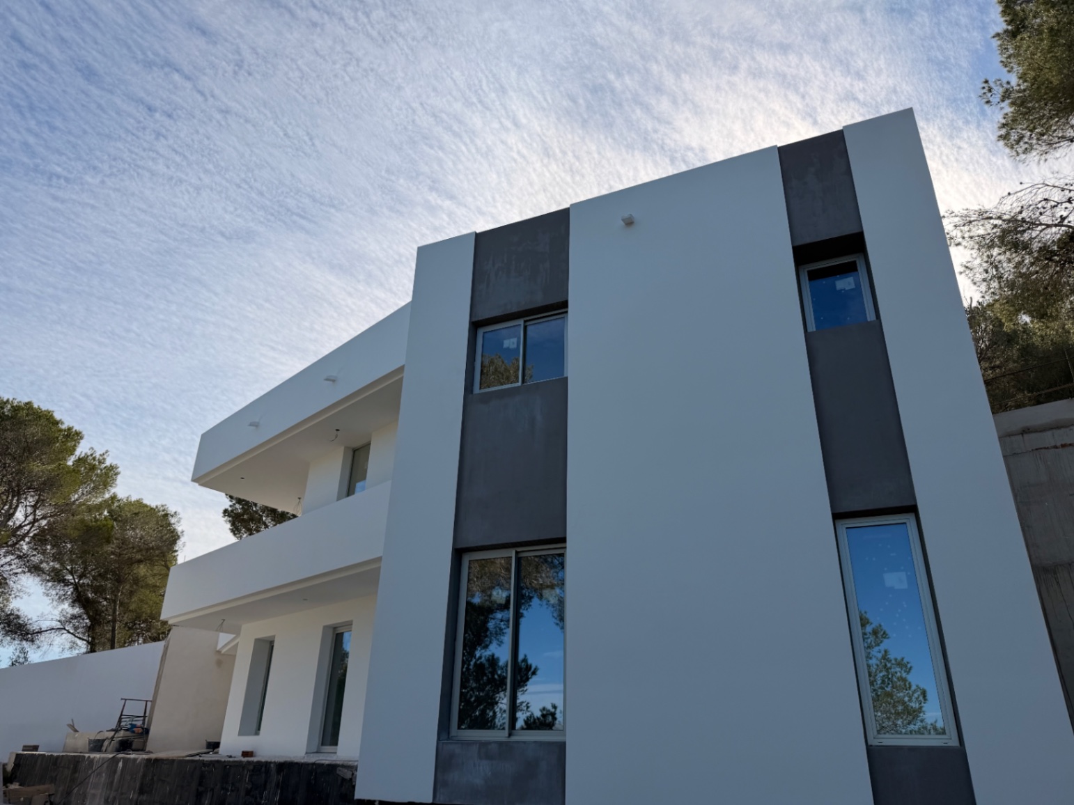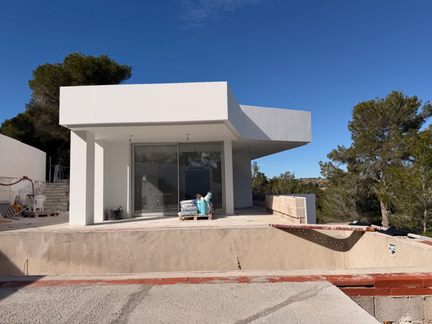Moderne villa met panoramisch uitzicht in Moraira – bijna instapklaar, oplevering binnen 3 maandenOntdek deze exclusieve moderne villa, ontworpen door de gerenommeerde architect Reme Giner, gelegen in een rustige en groene omgeving van Moraira. De woning ligt op een prachtig perceel met open vergezichten over de bergen en omliggende wijngaarden – een idyllische locatie op korte rijafstand van het centrum van Moraira, stranden en alle voorzieningen.De villa wordt binnen 3 maanden opgeleverd, waardoor u de unieke kans heeft om een bijna voltooid, architectonisch hoogstaand project te bemachtigen zonder lange wachttijd.De woning is verdeeld over twee niveaus die harmonieus in het landschap zijn geïntegreerd, wat zorgt voor optimale privacy.Bovenverdieping (daggedeelte): een ruime en lichte woonkamer, moderne keuken, gastentoilet en een groot buitengedeelte met zowel overdekte als open terrassen. Vanaf hier geniet u van een stijlvolle chill-out zone direct naast het indrukwekkende infinity zwembad.Benedenverdieping (nachtgedeelte): drie comfortabele slaapkamers en twee badkamers, ontworpen met hoogwaardige materialen en een serene sfeer.De combinatie van strakke moderne architectuur, elegant interieurdesign en de rustige groene ligging maakt deze villa uitermate aantrekkelijk voor wie houdt van luxe, comfort en een eigentijdse levensstijl. Alle belangrijke voorzieningen — supermarkten, restaurants, scholen, sport- en golfclubs, wandelroutes en de prachtige stranden van Moraira — liggen op slechts enkele minuten rijden.Belangrijkste kenmerken:Exclusieve moderne villa ontworpen door architect Reme GinerOplevering binnen 3 maanden – bijna instapklaarRustige groene omgeving met open uitzicht op bergen en wijngaardenInfinity zwembad met ruime zonnige terrassenIndeling op twee niveaus met optimale privacyDrie slaapkamers en twee badkamersHoogwaardige materialen en modern designDicht bij stranden, centrum van Moraira en alle voorzieningenEen uitzonderlijke kans om een bijna opgeleverde, moderne designvilla te kopen op een van de meest gewilde locaties van Moraira — waar ruimte, luxe en natuur perfect samenkomen.Prijs exclusief belastingen en aankoopkosten.