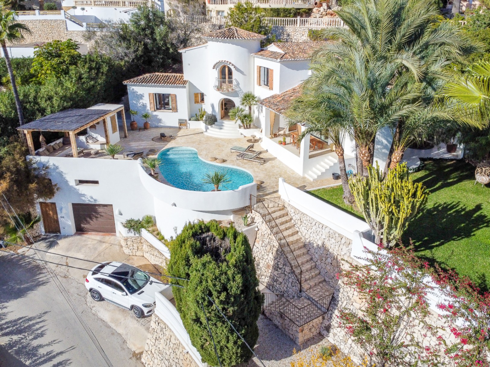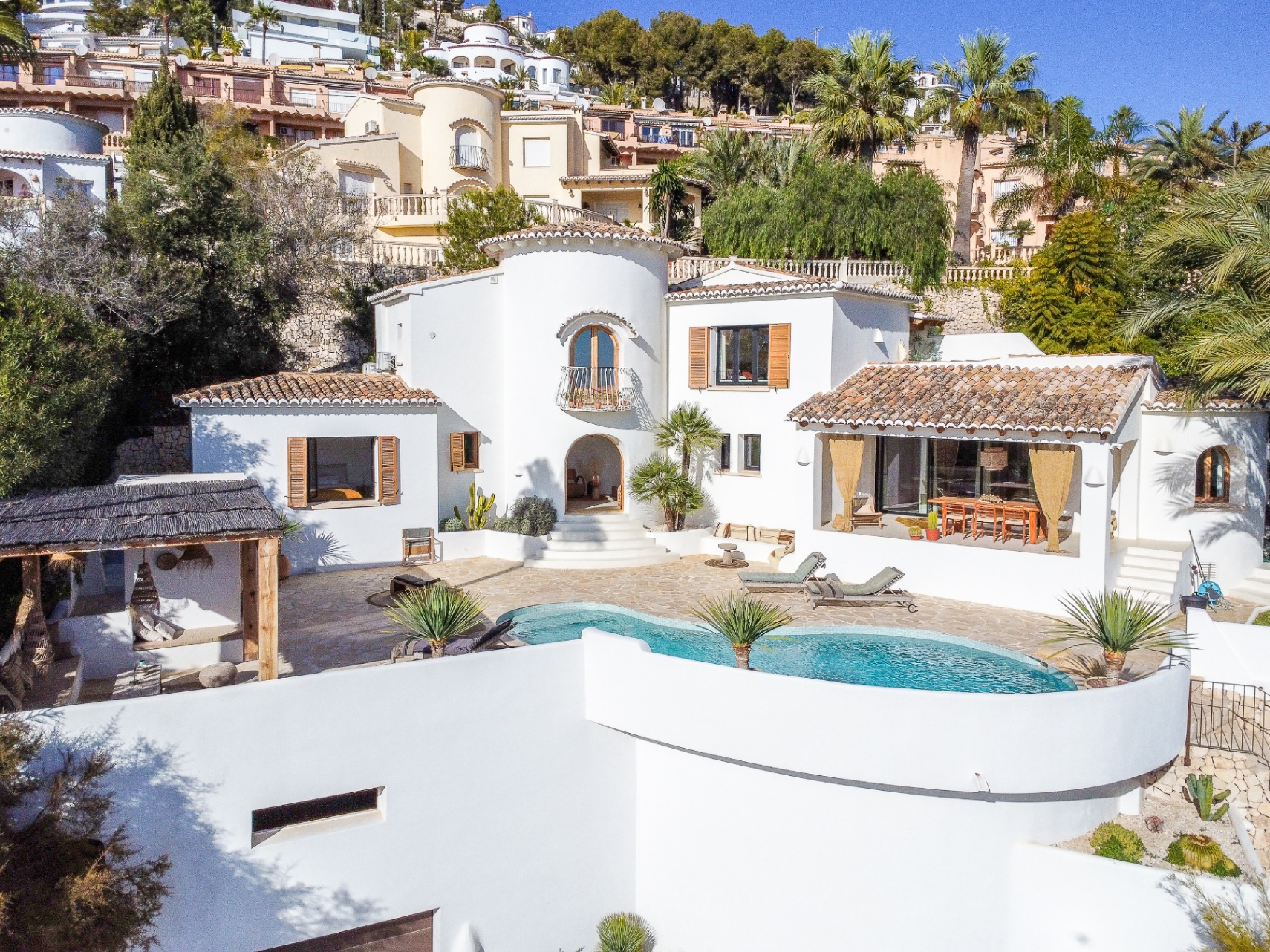 Deze volledig gerenoveerde en instapklare villa in Benimeit, Moraira biedt een spectaculair panoramisch uitzicht op zee van El Portet tot Calpe. De woning beschikt over een ruime garage, lift naar het terrasniveau, prachtige naya met fenomenaal uitzicht en een Ibiza-style chill-out area. Binnen vind je hoogwaardige afwerkingen, een moderne open keuken, lichte woonruimtes en vier slaapkamers met en suite badkamers. Volledige privacy, mediterrane charme en luxe komen hier samen — een unieke kans aan de Costa Blanca.