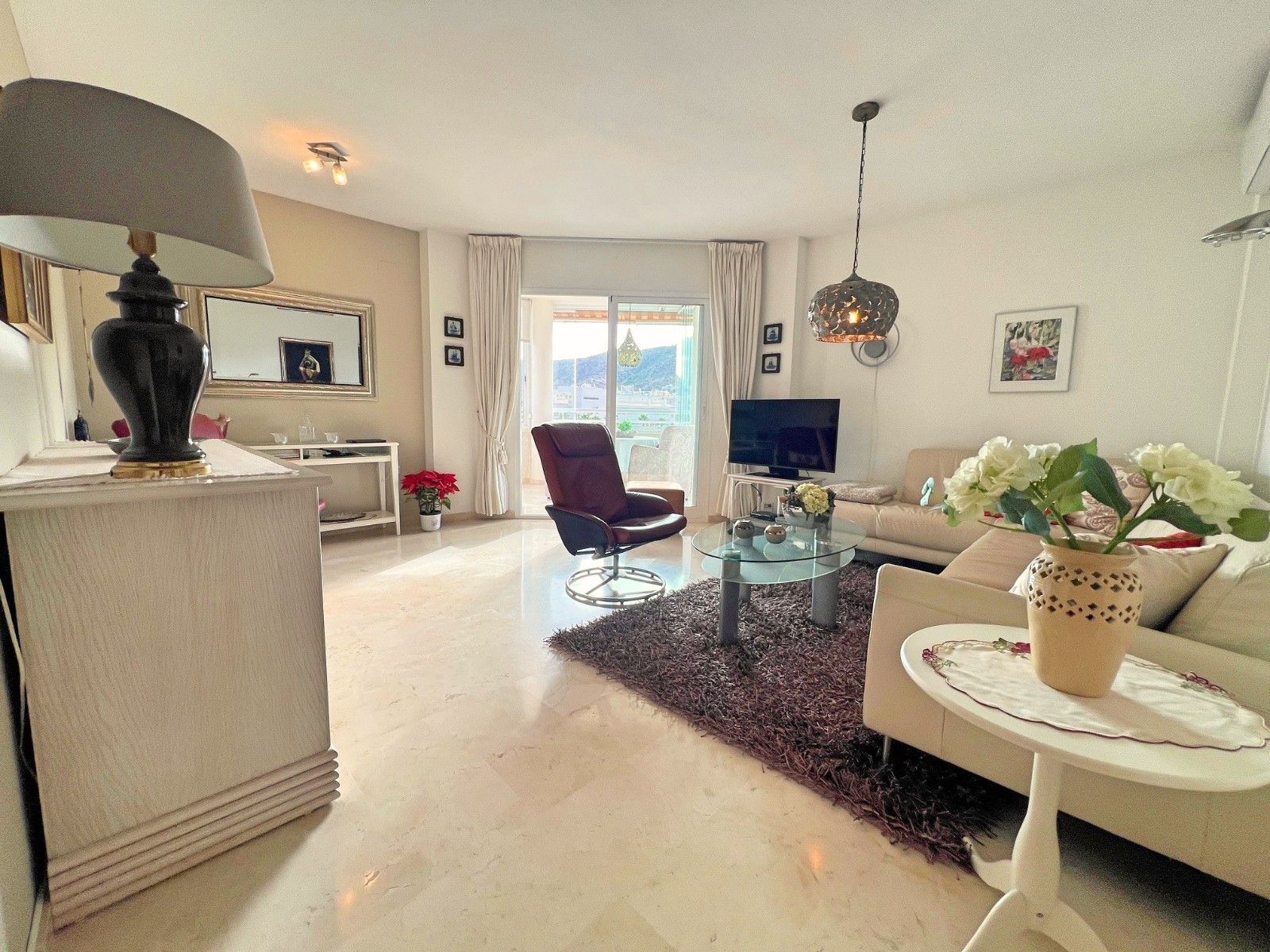Gelegen in het gewilde kustplaatsje Albir biedt dit uitnodigende penthouse een combinatie van comfort, gemak en de ontspannen Mediterrane levensstijl waar de regio zo bekend om staat. Met 86 m² aan doordacht ingedeelde woonruimte beschikt de woning over twee lichte slaapkamers en twee badkamers – ideaal voor dagelijks gebruik of om gasten te ontvangen. Het penthouse verkeert in goede staat en is direct te betrekken, met centrale verwarming, airconditioning en inbouwkasten die het hele jaar door comfort garanderen. De aparte keuken is praktisch ingericht voor wie graag kookt, terwijl de zuidwestelijke ligging zorgt voor een prettige lichtinval gedurende de dag.
