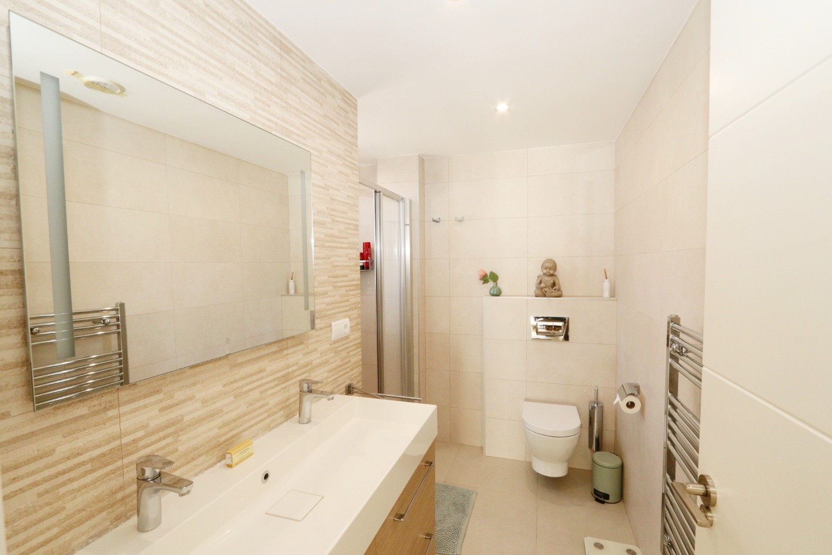 De hoofdruimte bestaat uit een open woonkamer die naadloos aansluit op een volledig uitgeruste keuken met Siemens- en Bosch-apparatuur. Grote ramen en diverse terrassen zorgen voor veel lichtinval en een soepele overgang tussen binnen en buiten. Buiten vind je een mooi aangelegde tuin en een privézwembad, ideaal om te genieten van het mediterrane klimaat.