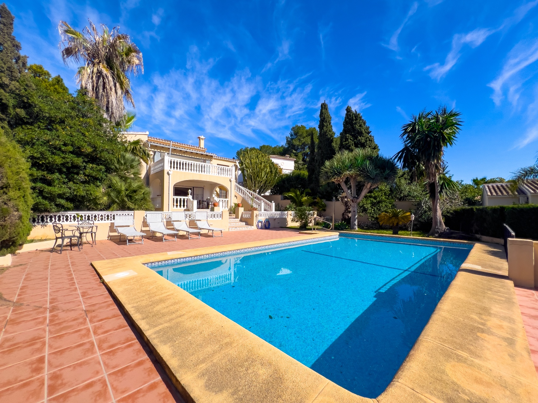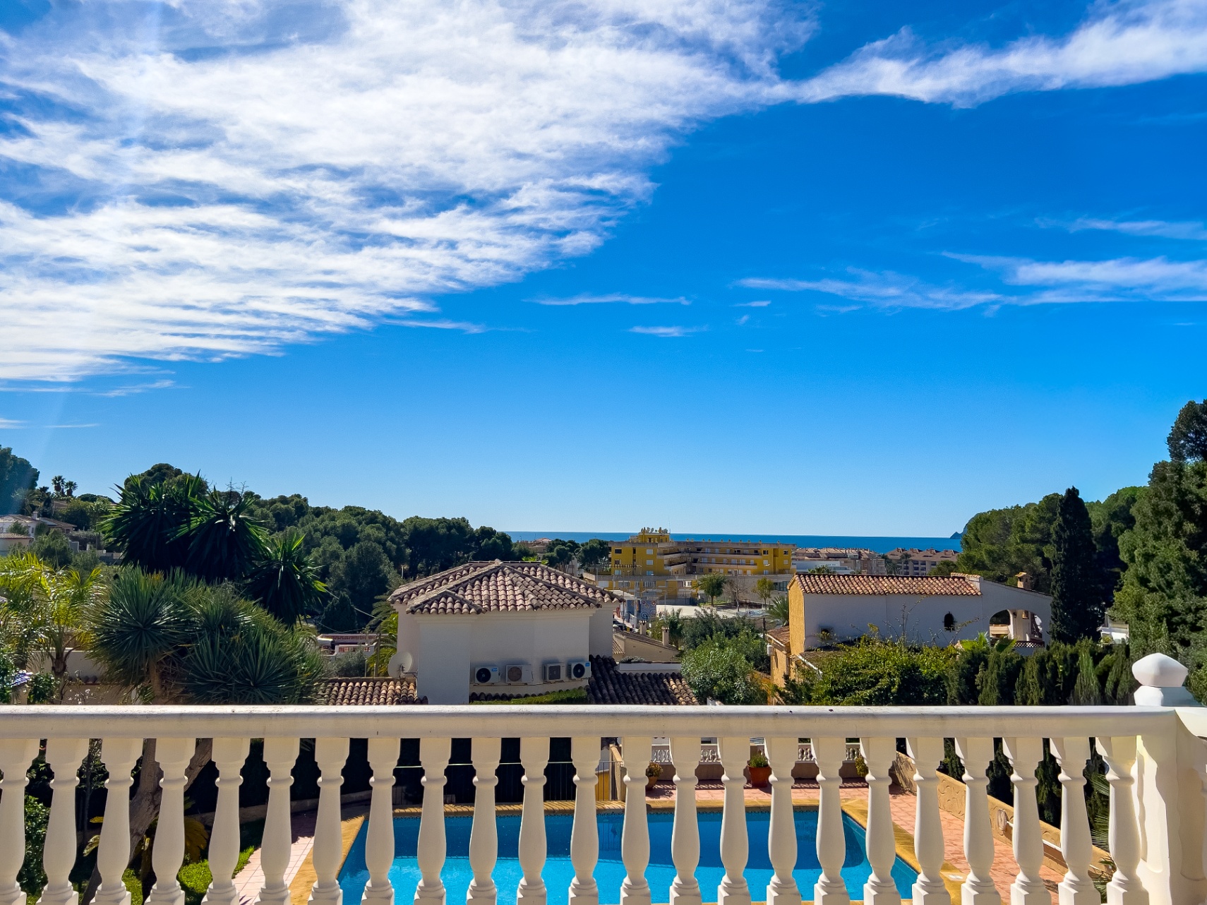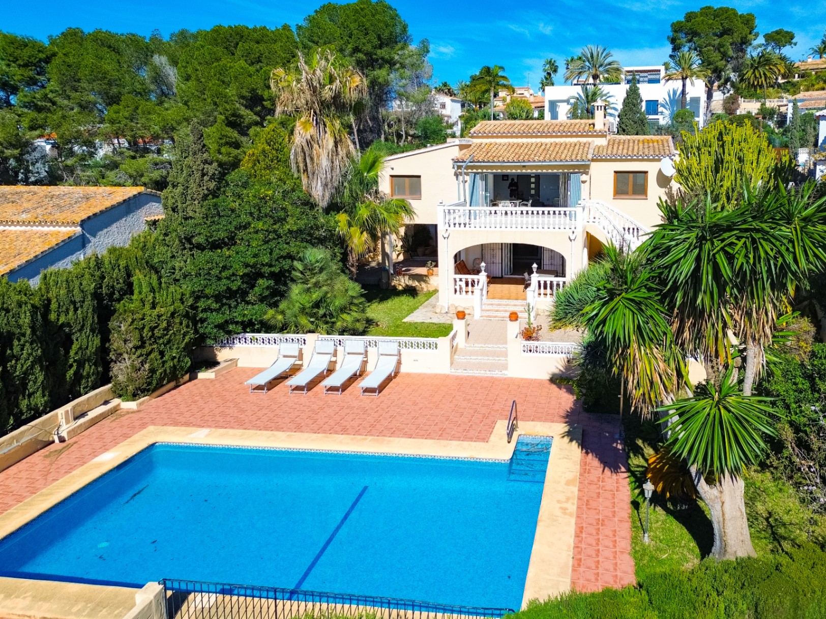 Zuidgerichte villa in Moraira, gerenoveerd in 2013, met open zeezicht en hoge privacy. Gelegen op loopafstand van het stadscentrum (500 m) en het strand (600 m). Verdeeld over twee niveaus.Hoofdhuis bestaat uit een woonkamer, eetkamer, keuken met Miele-apparatuur, twee slaapkamers, twee badkamers (één en-suite). Onafhankelijk gastenappartement met woonkamer, keuken, eetgedeelte, één slaapkamer, één badkamer, en de mogelijkheid om een extra slaapkamer te creëren.Buitenruimtes omvatten meerdere terrassen (deels overdekt), een privétuin en een privézwembad van 6 × 12 m. Het pand omvat een garage en buitenparkeergelegenheid voor twee auto’s.Aanvullende kenmerken: warme en koude airconditioning, dubbele beglazing, alarmsysteem, elektrische toegangspoort, glasvezelinternet, designverlichting, kwaliteitsmaterialen overal. Meubels bespreekbaar.