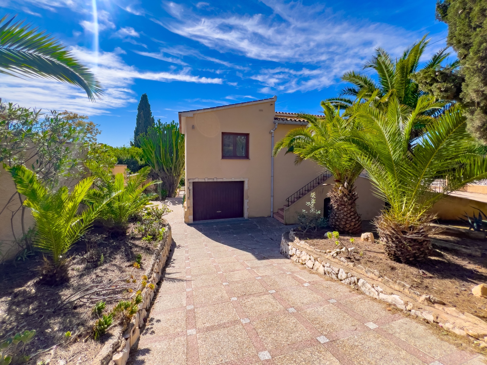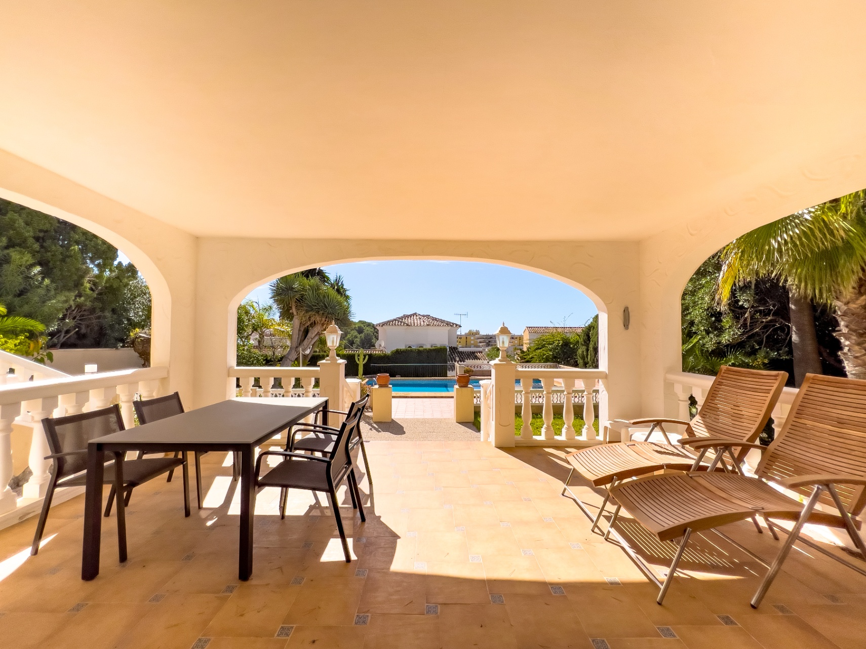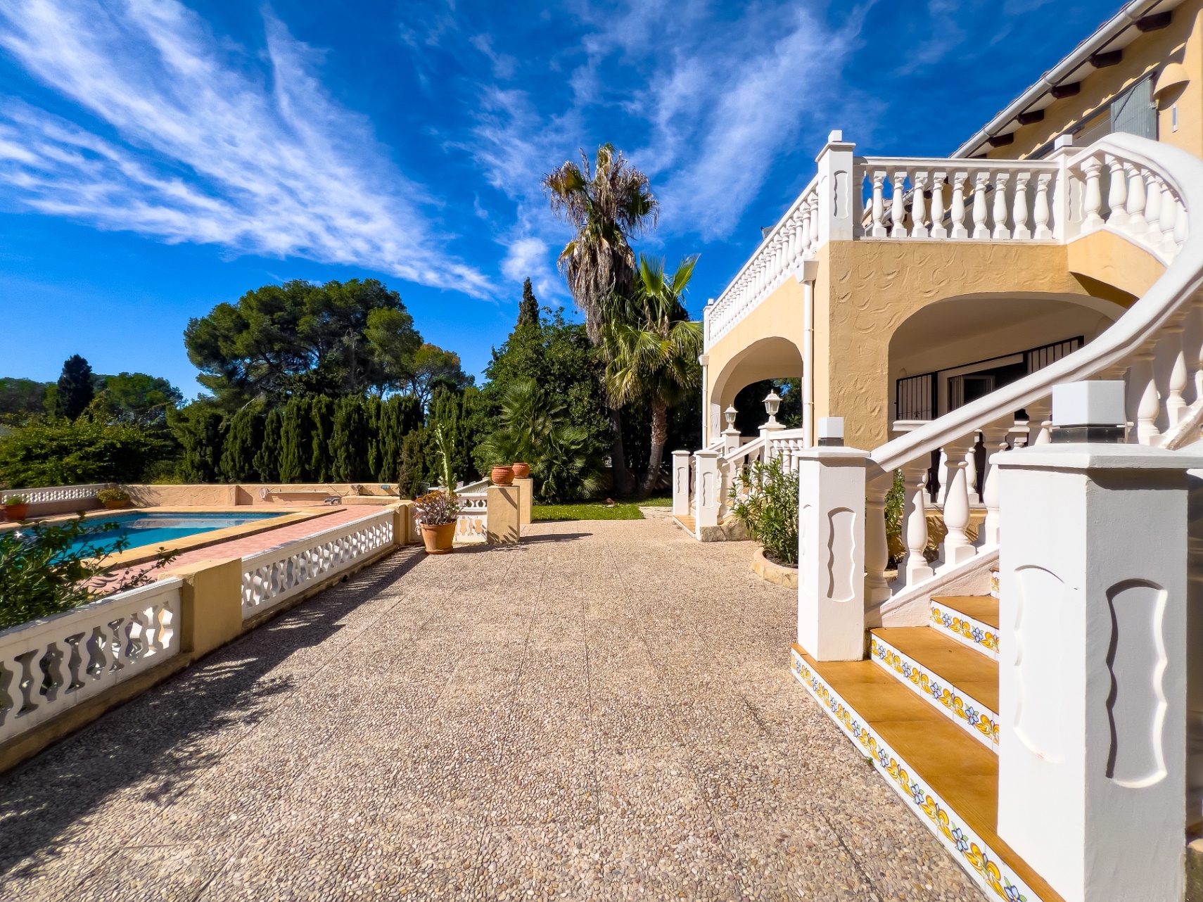 Zuidgerichte villa in Moraira, gerenoveerd in 2013, met open zeezicht en hoge privacy. Gelegen op loopafstand van het stadscentrum (500 m) en het strand (600 m). Verdeeld over twee niveaus.Hoofdhuis bestaat uit een woonkamer, eetkamer, keuken met Miele-apparatuur, twee slaapkamers, twee badkamers (één en-suite). Onafhankelijk gastenappartement met woonkamer, keuken, eetgedeelte, één slaapkamer, één badkamer, en de mogelijkheid om een extra slaapkamer te creëren.Buitenruimtes omvatten meerdere terrassen (deels overdekt), een privétuin en een privézwembad van 6 × 12 m. Het pand omvat een garage en buitenparkeergelegenheid voor twee auto’s.Aanvullende kenmerken: warme en koude airconditioning, dubbele beglazing, alarmsysteem, elektrische toegangspoort, glasvezelinternet, designverlichting, kwaliteitsmaterialen overal. Meubels bespreekbaar.