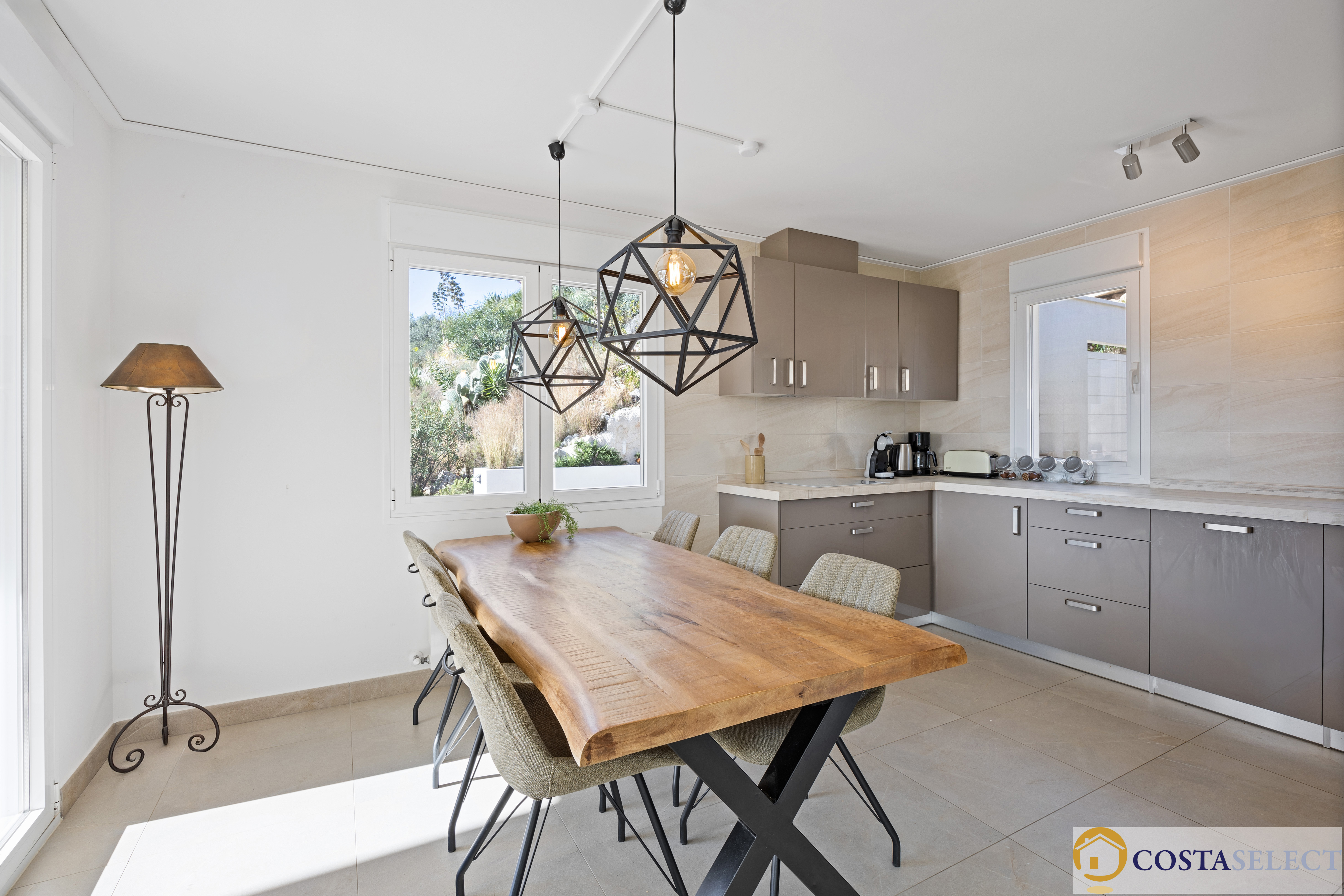 Via een elektrische poort bereikt u ruime, beveiligde parkeergelegenheid en de statige entree. De royale ontvangsthal leidt naar een indrukwekkende open woon- en eetkamer van ca. 80 m² met grote raampartijen en directe toegang tot een zonneterras. De luxe, volledig ingerichte keuken sluit aan op een sfeervolle, overdekte naya/chill-out patio voor al fresco dining. Aansluitend bevindt zich een praktische bijkeuken.