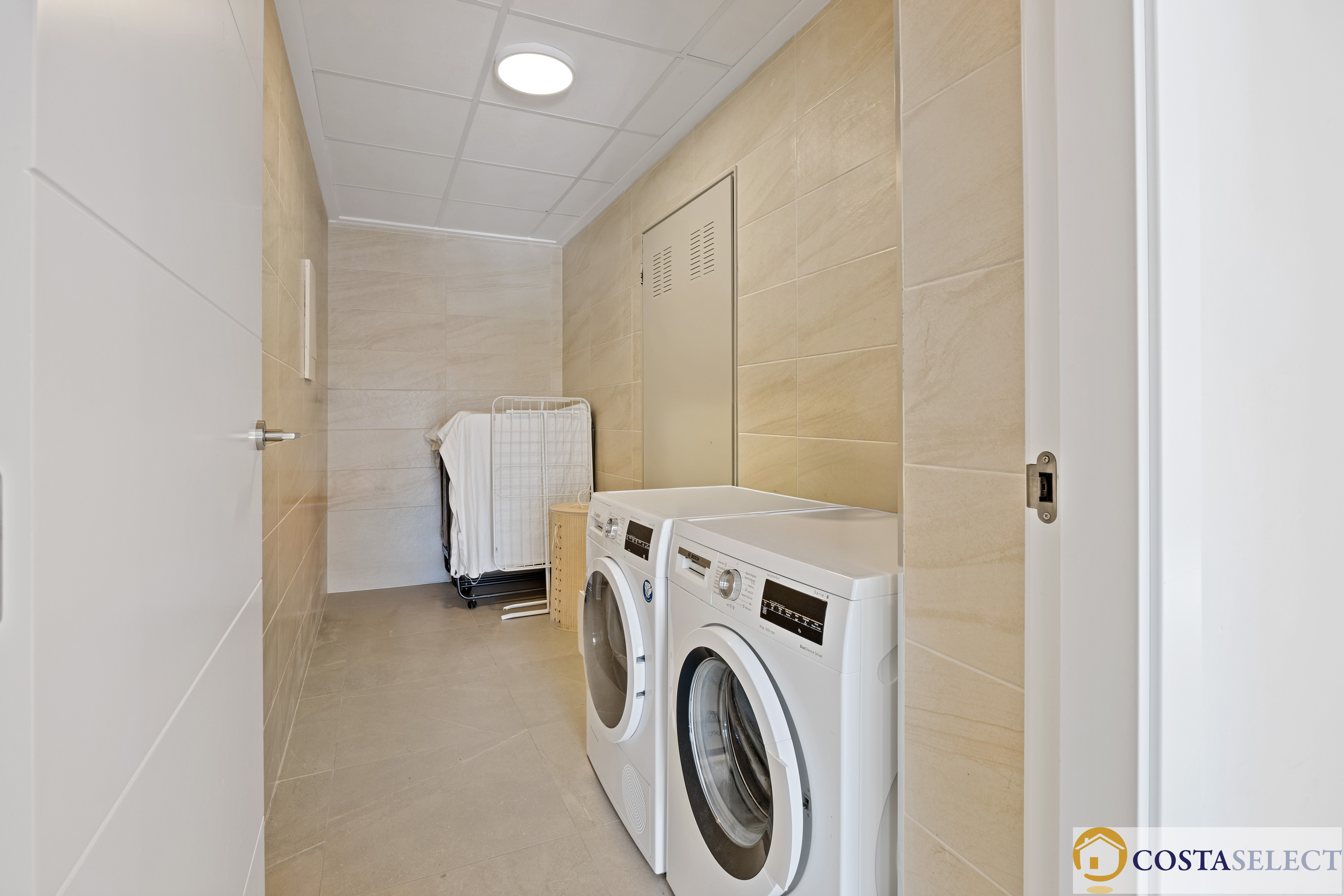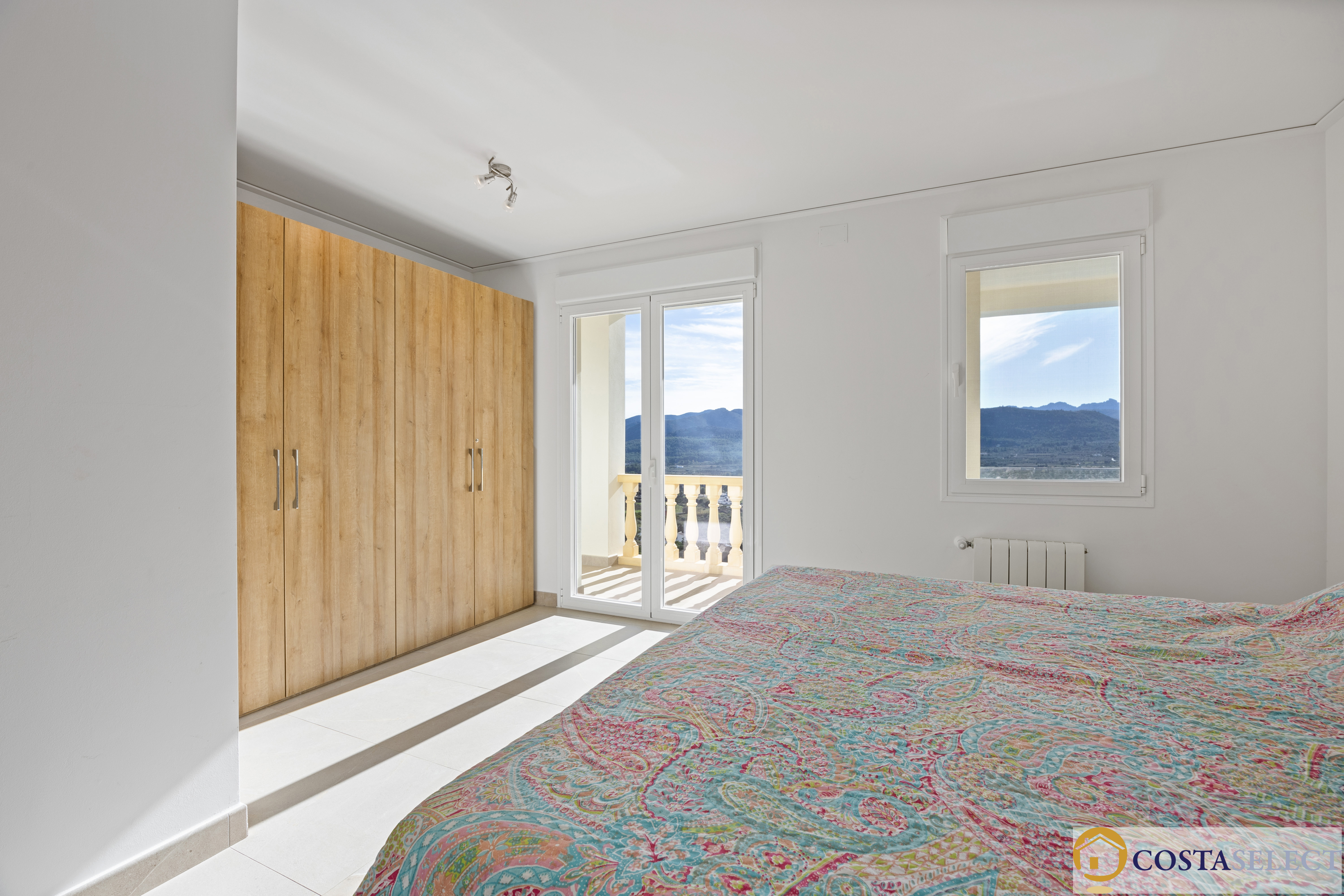 drie tweepersoonsslaapkamers, eveneens met inbouwkasten, warm/koud airconditioning en openslaande deuren;