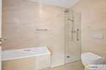 een grote master suite met inbouwkasten, warm/koud airconditioning, privébalkon en een ruime en-suite badkamer met inloopdouche;