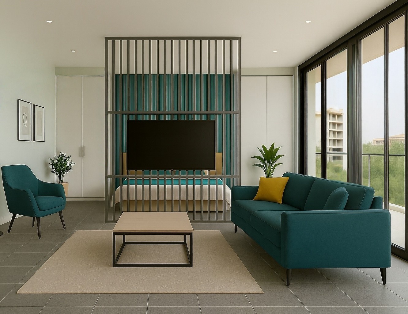 De 1 slaapkamer appartementen hebben een oppervlakte van 60m2