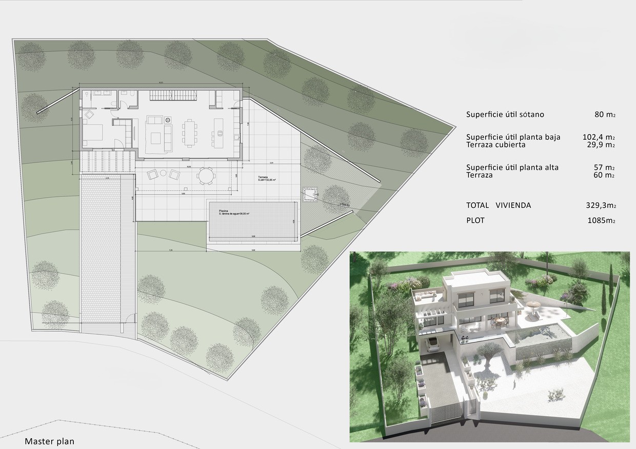 For sale in Jávea, Costa Blanca! Discover this stunning new build villa with 4-bedroom, 4-bathroom located in the peaceful El Rafalet residential area of Jávea at only 5km from Arenal Beach with spectacular Montgó Views. This modern home boasts breathtaking Montgó mountain views, sleek contemporary architecture, and top-quality finishes, making it the perfect choice for luxury living. Spanning 329m² on a 1,085m² plot, this three-level villa offers a spacious and functional layout. The main floor features an open-plan living and dining area with large windows that allow for plenty of natural light from where you have direct access to the terrace and pool area. A fully equipped contemporary kitchen seamlessly connects to the space, making it ideal for entertaining. Furthermore you will find the master bedroom, complete with a dressing area and ensuite bathroom and a guest toilet is also conveniently located on this level. On the upper floor, there are two additional bedrooms, each with its own ensuite bathroom, providing comfort and privacy for family members or guests. The under-build includes a storage and laundry room, along with a versatile space that can be used as a gym or an additional bedroom with a private bathroom. A spacious two-car garage ensures secure parking and extra storage. Outside, the property features a private rectangular pool with a sun terrace, offering the perfect setting for relaxation and outdoor entertainment. With construction set to begin soon, this is a prime investment opportunity in Jávea. Secure your dream home on the Costa Blanca today – contact us for more details!