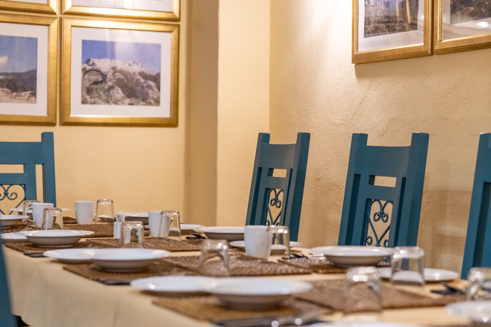Set over three floors, the house features seven bedrooms and six bathrooms, generous living and dining areas, and a fully equipped commercial-style kitchen. Original stone walls, wooden beams, and rustic tiles create a warm, authentic atmosphere throughout.