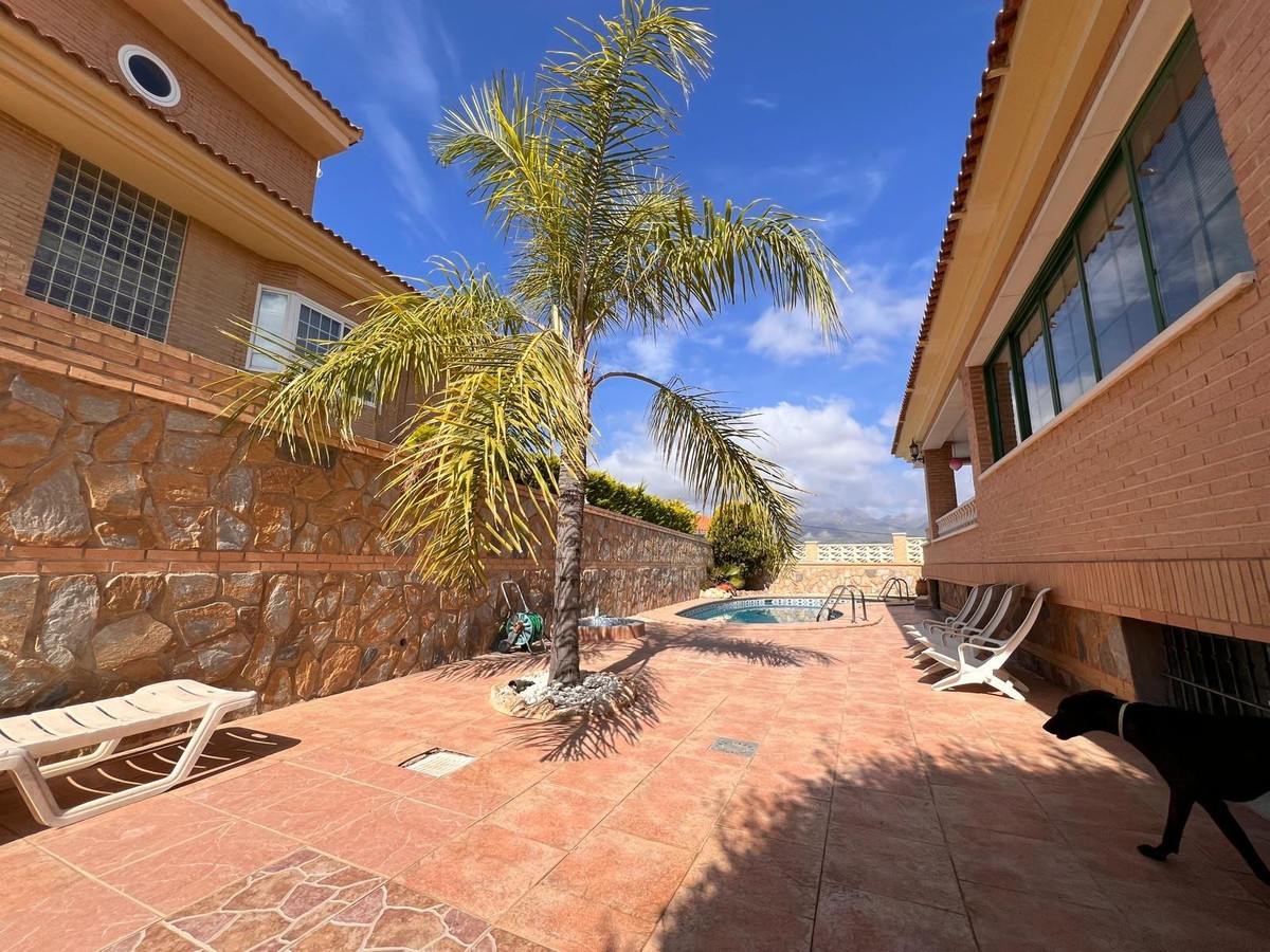 This spacious villa of 480 m² is situated on a 564 m² plot and consists of 3 floors and a solarium. The property features a garden and several terraces to enjoy the outdoors.Upon entering the house, you are welcomed into a hallway. To the left is the independent kitchen with a dining area and access to a covered terrace. In front of you are the living room, a bedroom, and a bathroom.On the second floor, accessed by stairs, there are 4 additional bedrooms, one of which has an en-suite bathroom. All bedrooms have access to a terrace.On the third level, there is a solarium with panoramic views.In the basement, there is an independent apartment with 3 bedrooms, a full bathroom, a living room, and a kitchen. There is also a large room that can be used as a games area, along with a summer kitchen and an additional bathroom.Equipment:The villa is equipped with a security door, double-glazed windows, a fully equipped kitchen, air conditioning (cold/heat), a kidney-shaped pool, covered and open terraces, a garden, a solarium, and an independent apartment. It also has a games area and a summer kitchen.Location:The villa is located in the residential area of Rincón de Loix in Benidorm, close to the main avenue with bus stops, taxis, camping, the private Lope de Vega school, supermarkets, and other amenities. Alicante-El Altet Airport and the port of Alicante are a 45-minute drive away, and the La Marina shopping center, with numerous shops and large supermarkets, is just 15 minutes away.