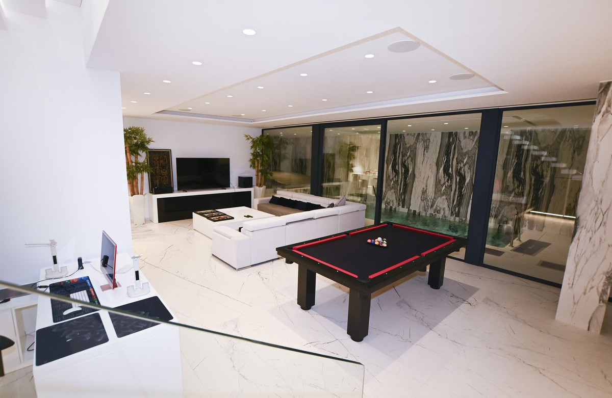 On this level, there is a large indoor swimming pool, a jacuzzi, a Finnish sauna, a home cinema, a pool table, a separate office area, a utility room, a toilet, and direct access to the garage.