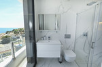 Here you will find 3 bedrooms with built-in wardrobes and 3 bathrooms. The master bedroom has its own bathroom with a whirlpool tub and shower, the second bedroom also has its own bathroom with a shower, and the third bedroom is located close to the shared third bathroom with a shower. All bedrooms have direct access to the terrace, which offers impressive panoramic views of Calpe, the sea, and the famous PeƱon de Ifach rock.