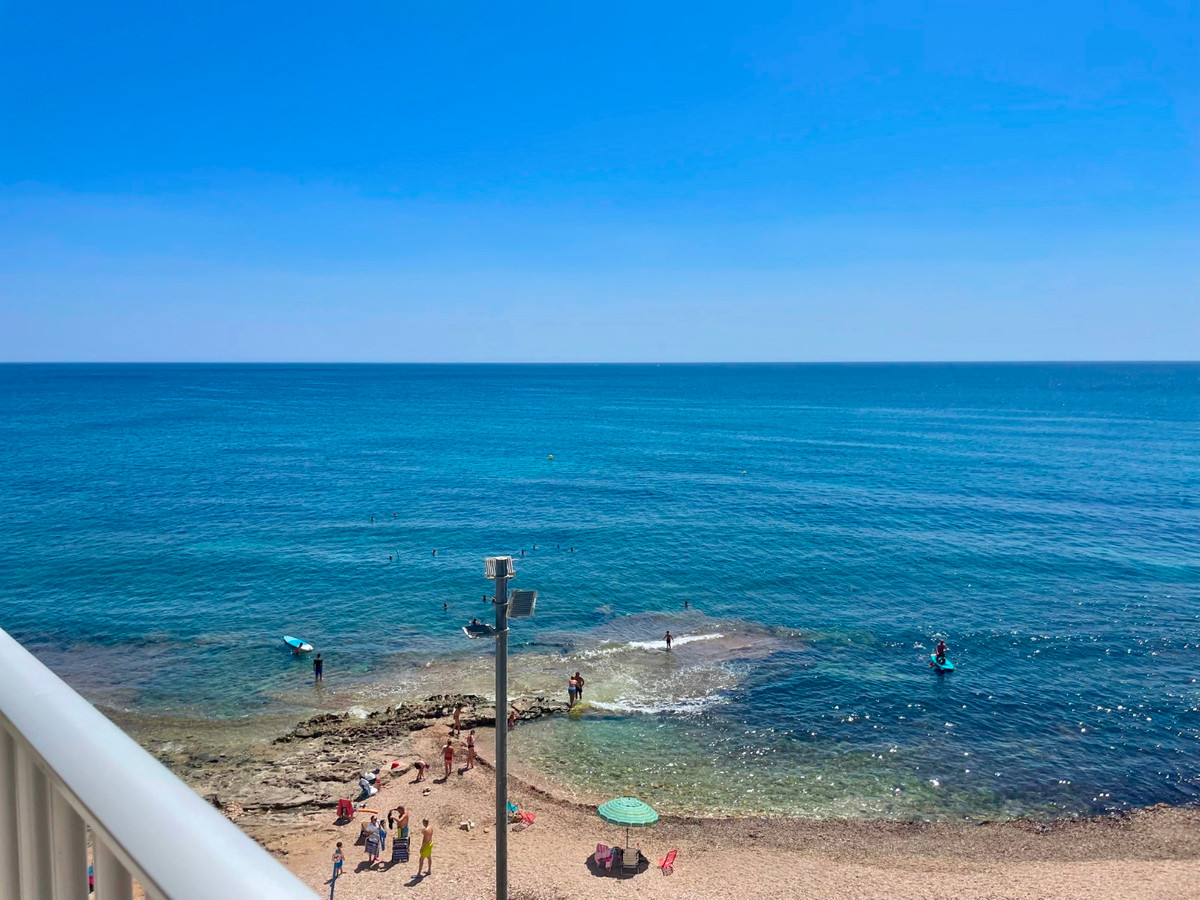 Located directly on the beachfront, this fully renovated 3-bedroom, 1-bathroom apartment offers stunning unobstructed sea views and an unbeatable coastal lifestyle. Positioned on the 4th floor with lift access, the property boasts a bright and open layout with modern finishes throughout.