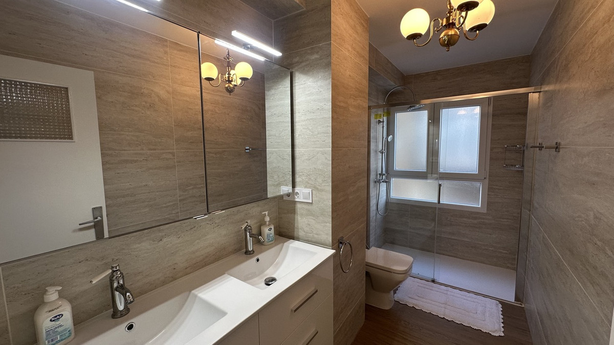 An exclusive, fully renovated apartment on the frontline in the heart of Torrevieja with stunning sea views. The apartment features three spacious bedrooms, two modern bathrooms, high ceilings, wooden floors, and high-quality double-glazed windows, creating a cozy and elegant atmosphere. Its southwest orientation ensures excellent natural light throughout the day. The fully equipped kitchen is ready for immediate use, while the central air conditioning system with heating and cooling modes guarantees comfort all year round. Built-in wardrobes provide optimal storage, and the building has an elevator for added convenience. For security, an alarm system is installed. The apartment also includes an independent laundry room, as well as all necessary furniture and a TV. All utilities, including water and electrical wiring, are brand new and in perfect condition. The location is ideal for both living and investment, with bars, restaurants, supermarkets, schools, hospitals, and universities just a short walk away. Nearby, you'll also find parks, playgrounds, green areas, golf courses, and entertainment centers. Community fees are €68 per month. This is a perfect home for those looking to enjoy comfort, the sea, and a well-developed infrastructure in the very heart of Torrevieja.