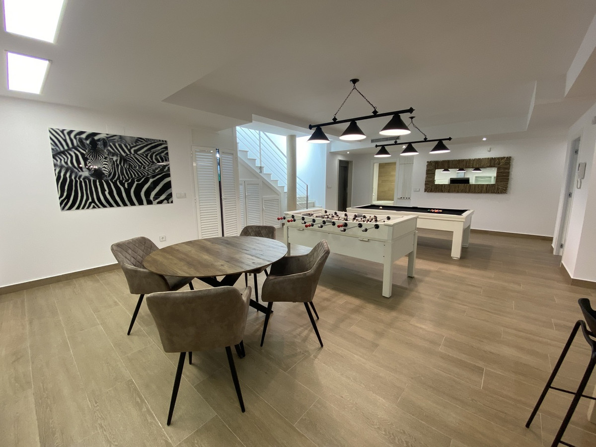 The basement unfolds into a versatile game room with billiards and table football, a spacious celebration room featuring a full kitchen, 2 bedrooms, 2 storage rooms, and a well-appointed full bathroom. The main floor showcases a seamless living-dining space with an open-concept kitchen and central island, complemented by the main bedroom with an en-suite bathroom. Additionally, a laundry room and a guest toilet enhance the practicality of this level.
