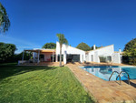 In the guest villa, there is an entrance hall, living room, and dining area, with access to an uncovered terrace with a large awning, and to the pool area. The kitchen is very spacious and also has access to the underground storage. It has two large double bedrooms, each with access to the terrace and pool area, as well as a shower.