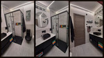 The bedrooms are quiet with pleasant light and have space for both a bed and bedside tables. There are two bathrooms, one of which is equipped with a toilet, sink and shower with glass walls.