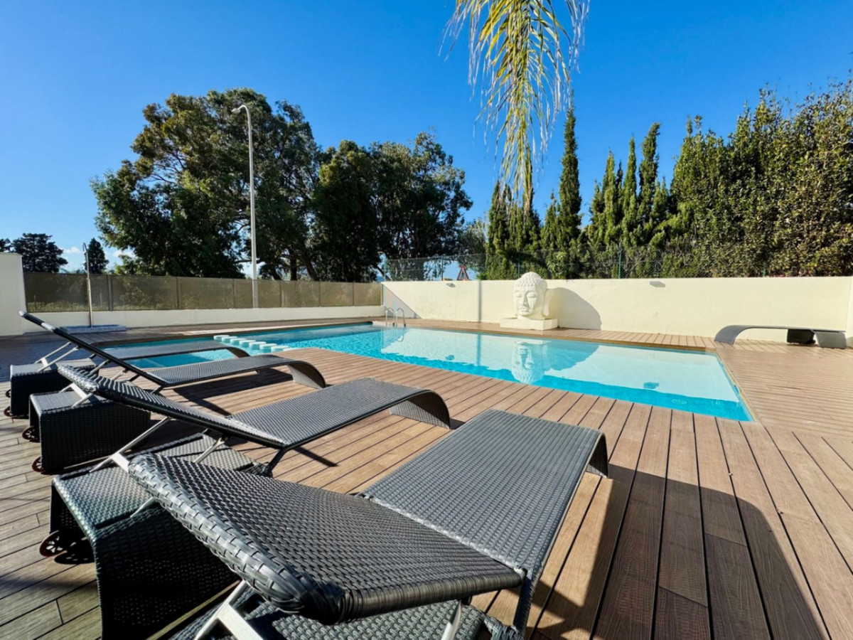 Het omheinde complex biedt uitstekende faciliteiten, waaronder een groot gemeenschappelijk zwembad met een apart kinderbad en betegelde buitenruimtes voor sport en spel. U hoeft zich alleen maar zorgen te maken over ontspannen, want het appartement wordt volledig gemeubileerd verkocht en is instapklaar.