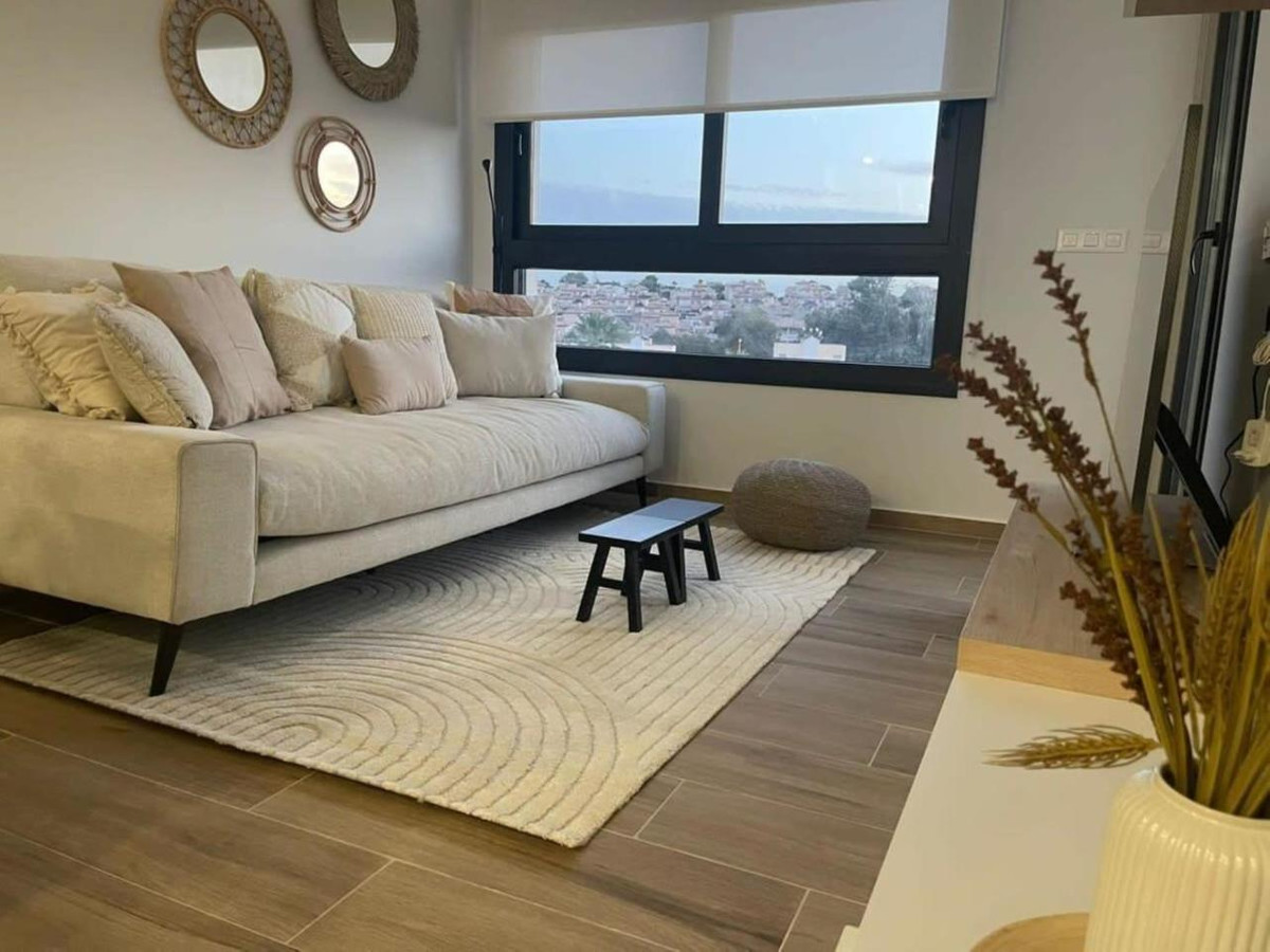 De woning bestaat uit een ruime woonkamer/eetkamer, een moderne open keuken in U-vorm, elektrische rolluiken, airconditioning (koeling/verwarming), een grote slaapkamer met garderobe en een en-suite badkamer, een tweede slaapkamer met garderobe en een extra badkamer met inloopdouche. Via de schuifdeuren komt u op het terras (met kleine berging) terecht waar u de hele dag van de zon kunt genieten en er is ook een enorm prive dakterras/solarium met een prachtig uitzicht.