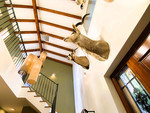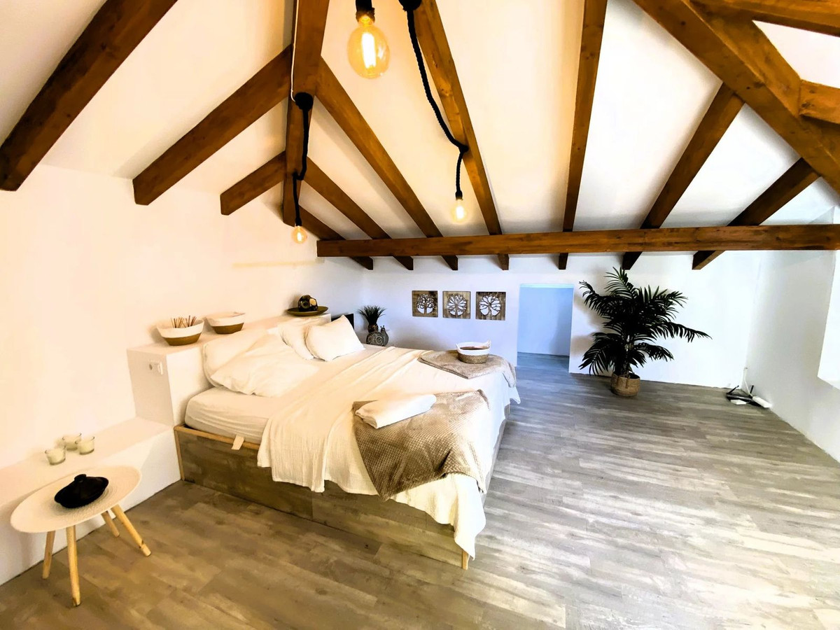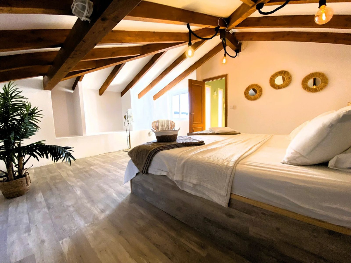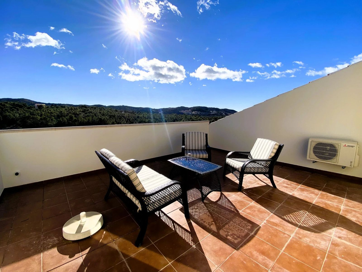 Via een stijlvolle trap naar de bovenste verdieping, waar een slaapkamer, badkamer, kantoor en een uitgestrekt buitenterras wachten en adembenemende vergezichten op de omgeving bieden.