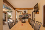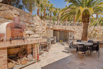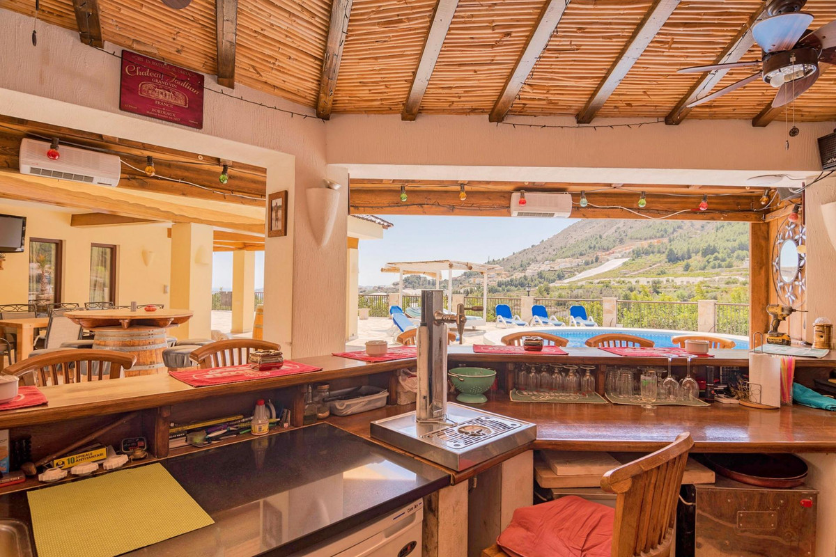 Het huis heeft terrassen rondom, dus altijd een schaduwplek, en naast het zwembad een grote buitenkeuken, annex bar, die in de koelere wintermaanden afgesloten kan worden, zodat er het gehele jaar gebruik van kan worden gemaakt.