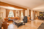 Op de benedenverdieping bestaat het huis uit een “officiële” entree met ruime hal en gastentoilet. De grote woonkamer met toegang naar een groot, overdekt en open terras en zwembad van waaruit het uitzicht overweldigend is. De keuken met bijkeuken is groot en volledig geëquipeerd. Verder bevindt zich op deze verdieping de “master bedroom” met badkamer en-suite en walk-in closet, toegang tot het grote terras.