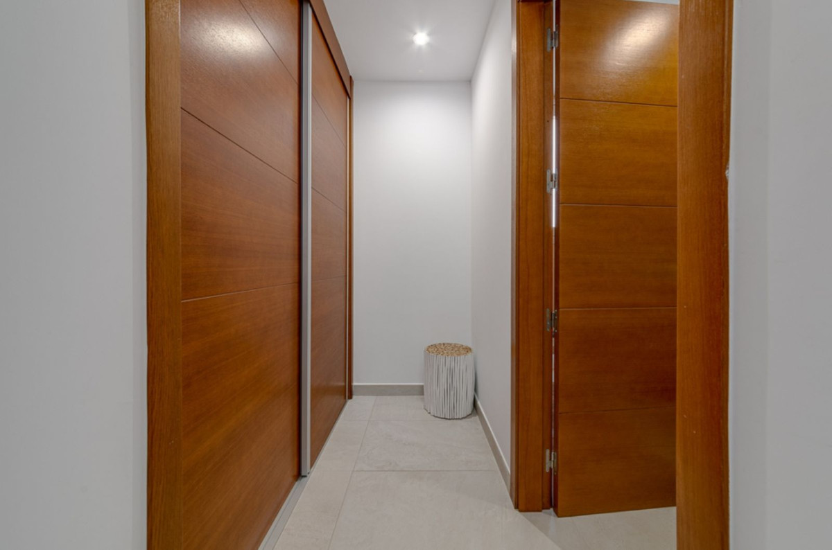 You enter into a entrence with a good wardrobe. The kitchen is open with an island