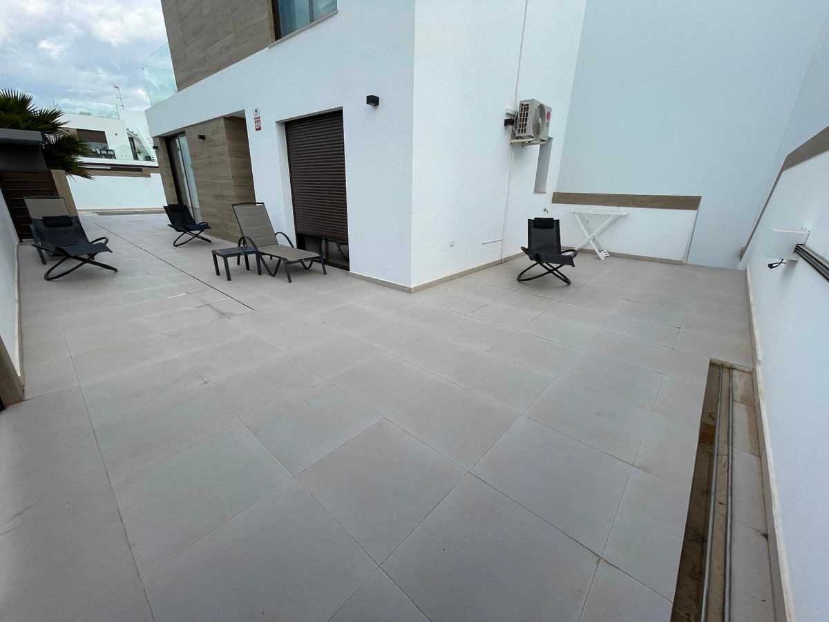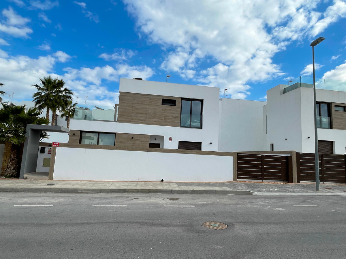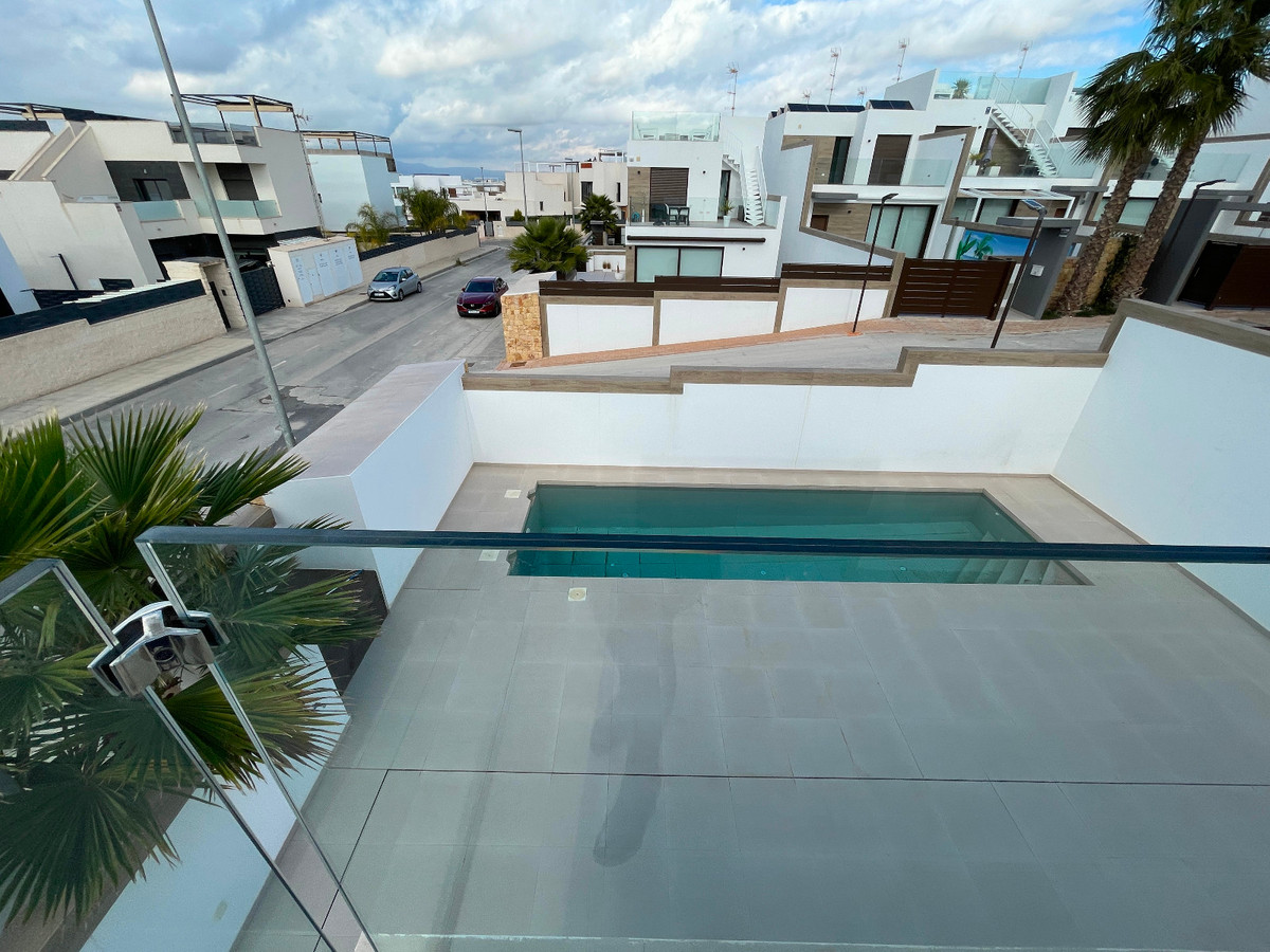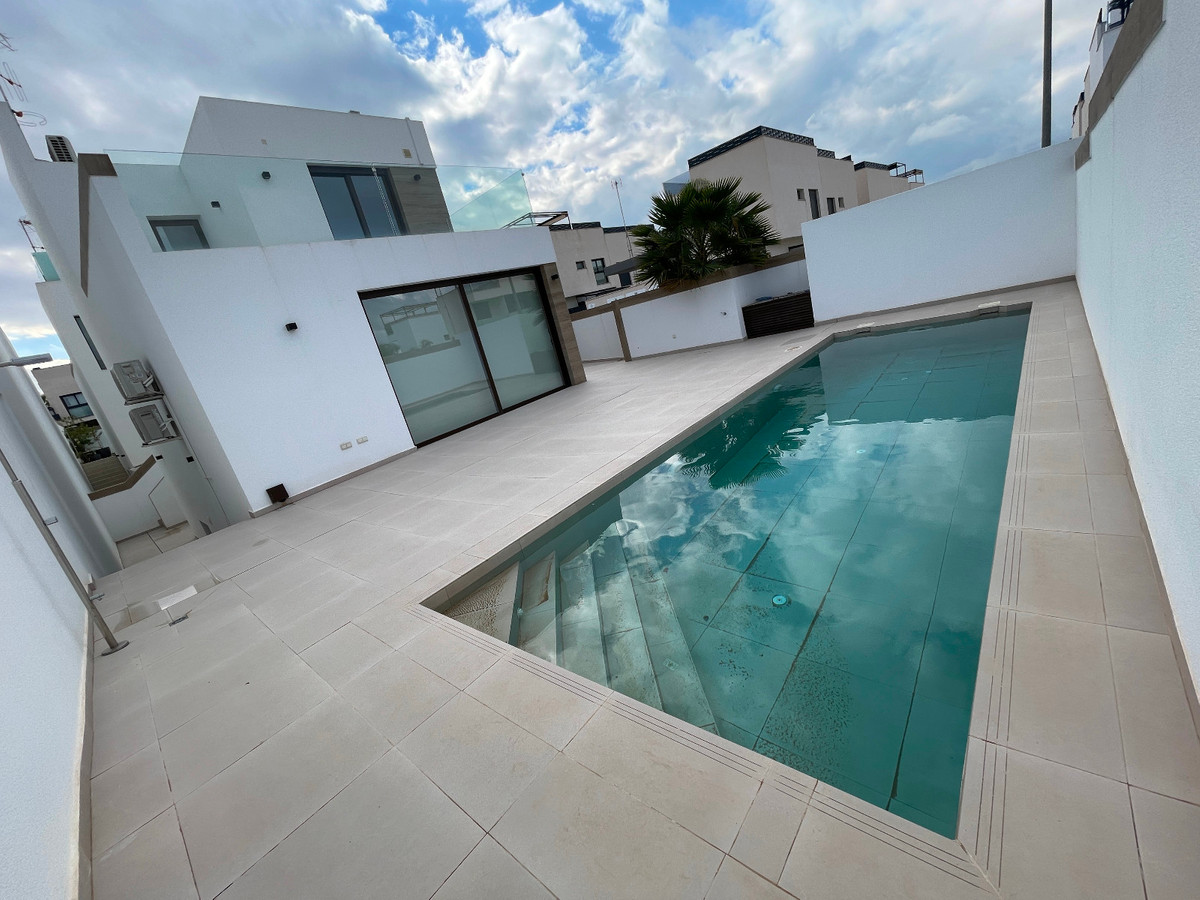 Moderne, stijlvolle villa met 3 slaapkamers in Benijofar. Bouwjaar 2022. Centrale ligging, 12 minuten van stranden. Open keuken, woonkamer, privézwembad. Extra’s: Ingebouwde kasten, airconditioning, elektrische rolluiken.