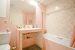 This terrace is south facing with fantastic views to the sea, the mountains and the communal gardens and pool, dining room and kitchen with barbecue.