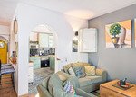 Een ruime open woonkamer en complete keuken
