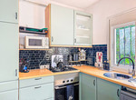 De keuken is volledig uitgerust, inclusief ruimtebesparende schuiflades/voorraadkast en ingebouwde
